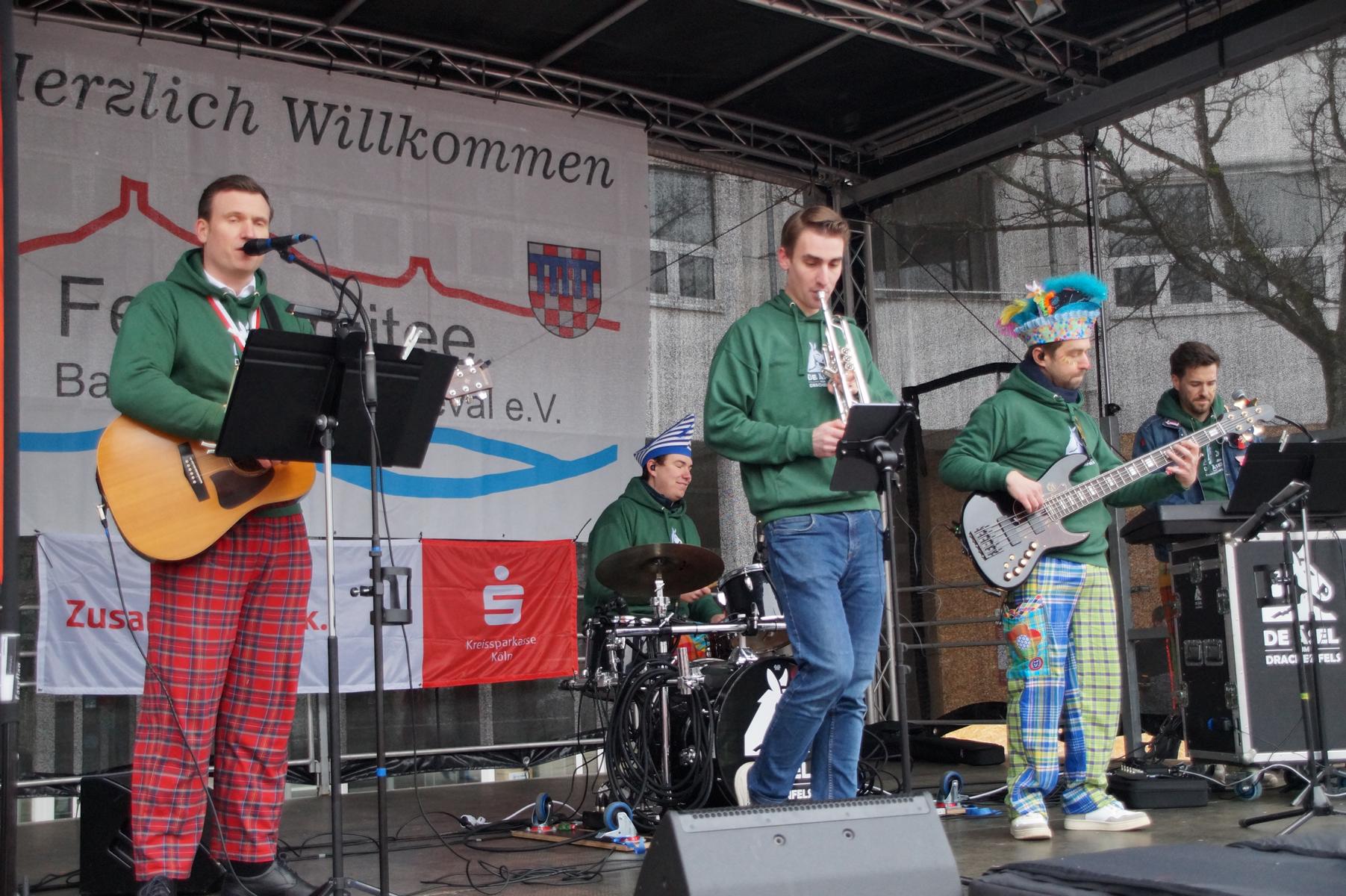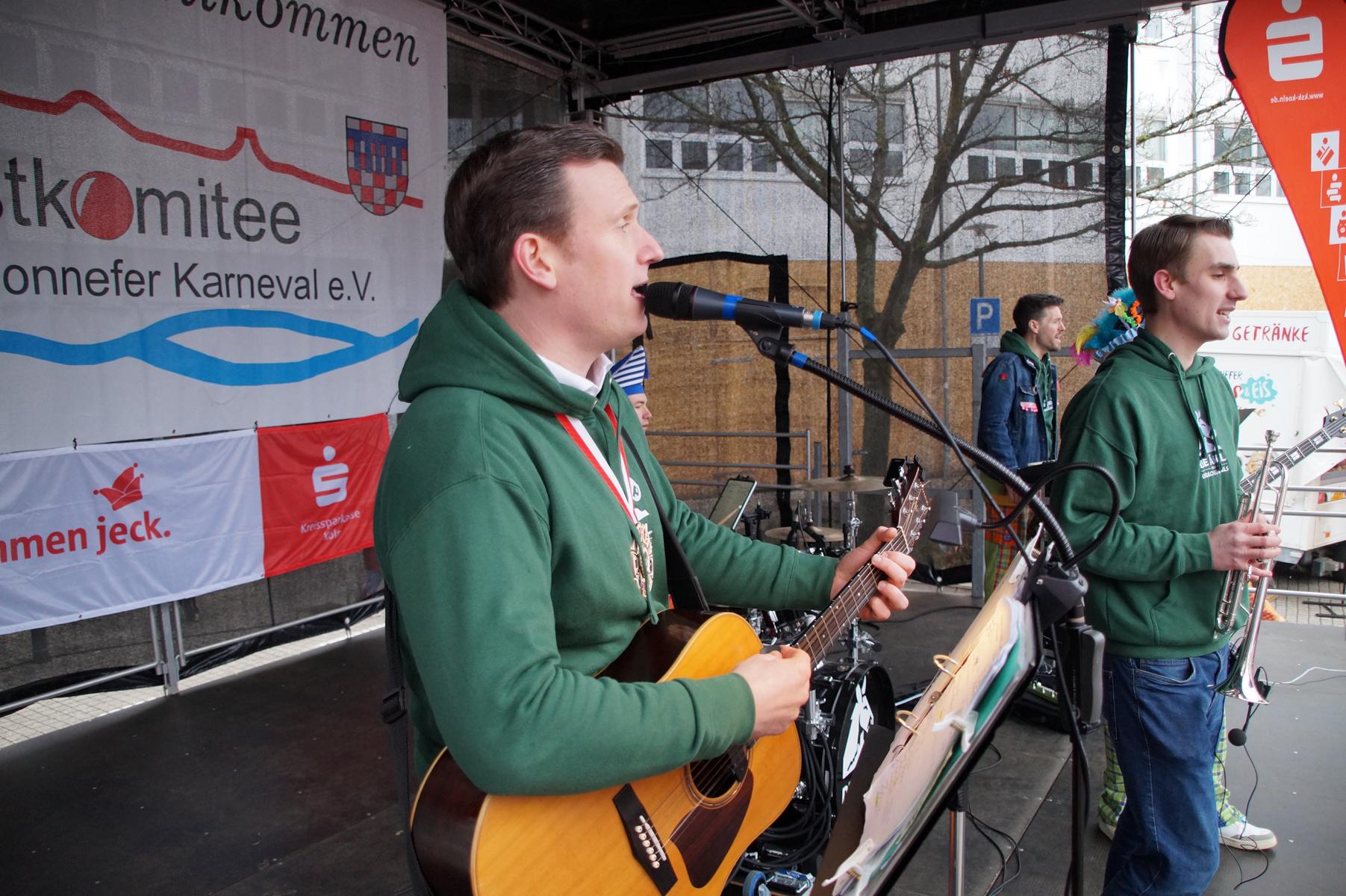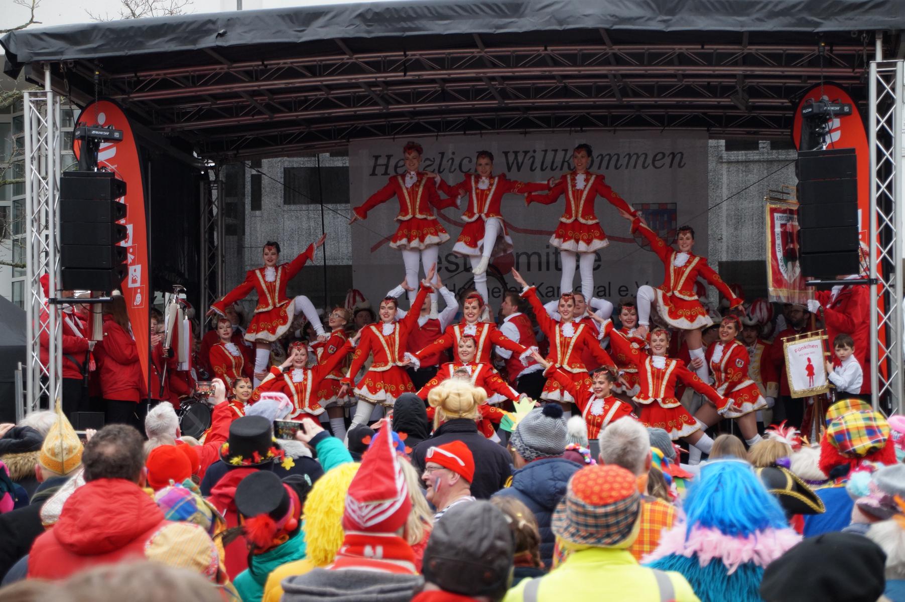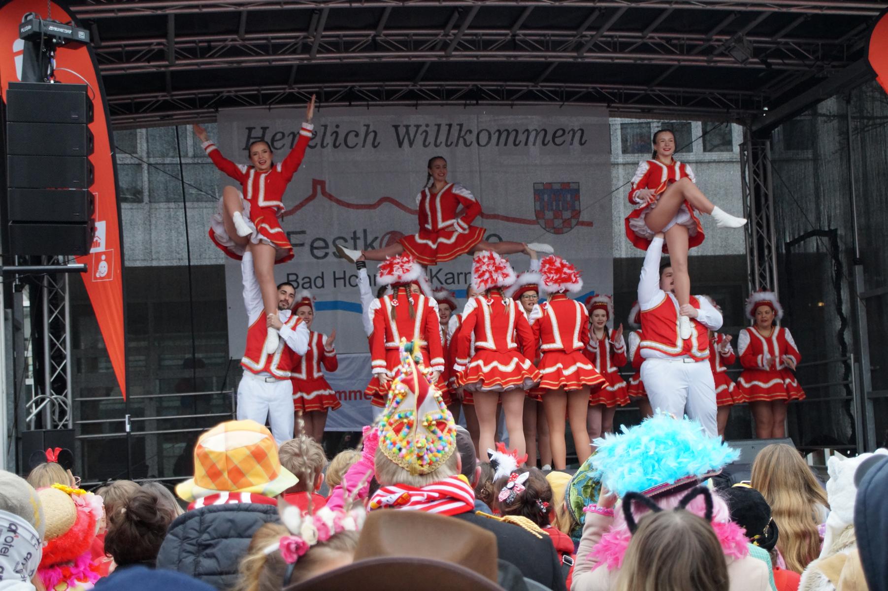 Bei trockenem Wetter und rund 5 Grad zeigten die Bad Honnefer Karnevalsvereine unter der Leitung des Festausschuss Bad Honnefer Karneval e.V. und der Moderation von Norbert Grunwald , Leiter des Stadtsoldatencorps Bad Honnef (Spielmannszuges), in einem fast 4 Stündigen Programm, was sie zu bieten haben.