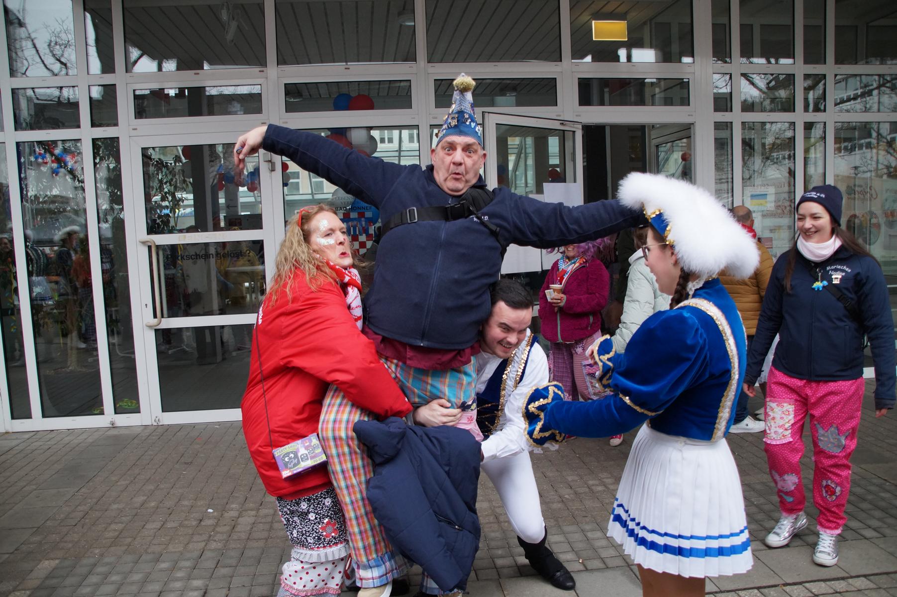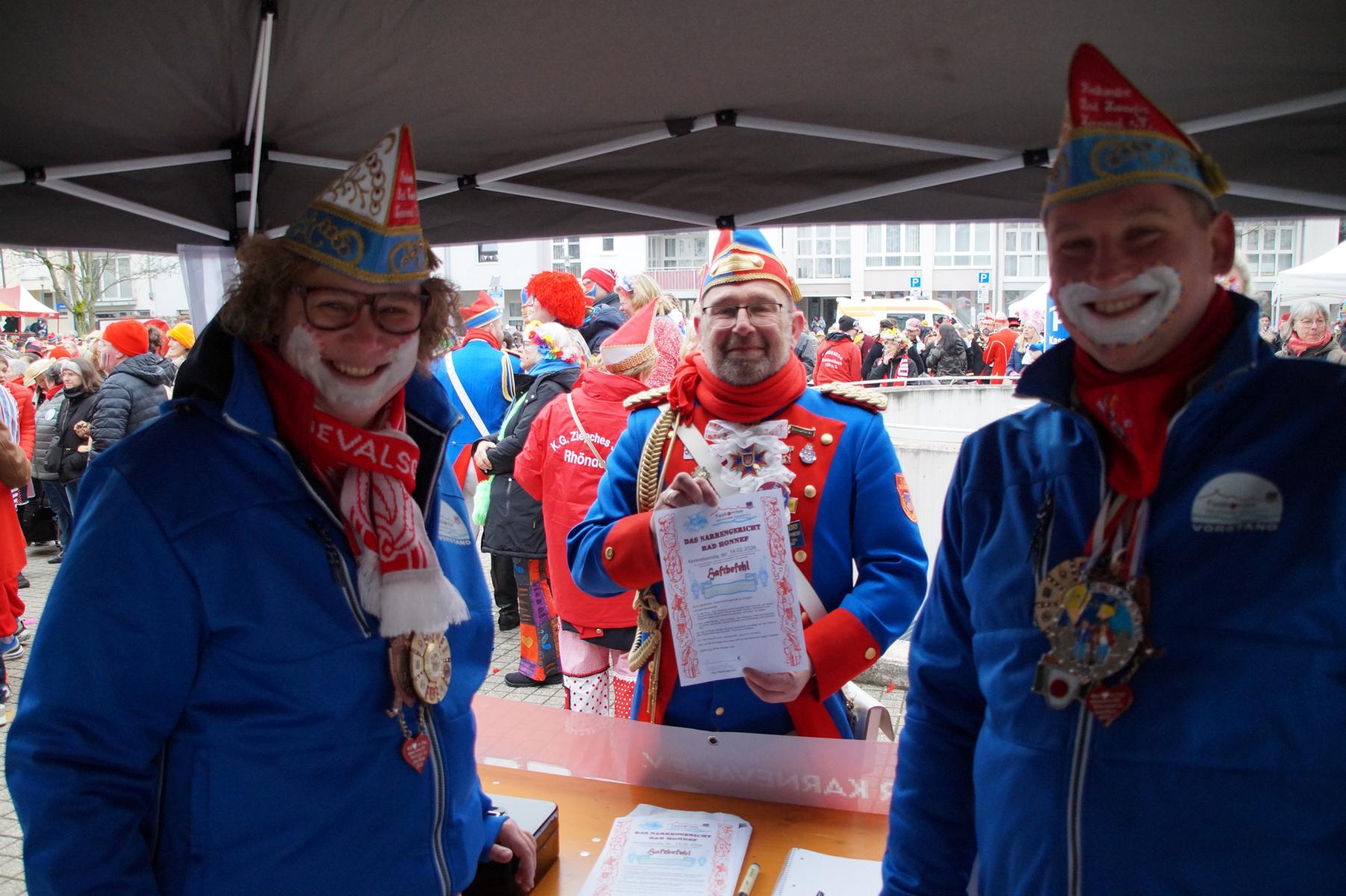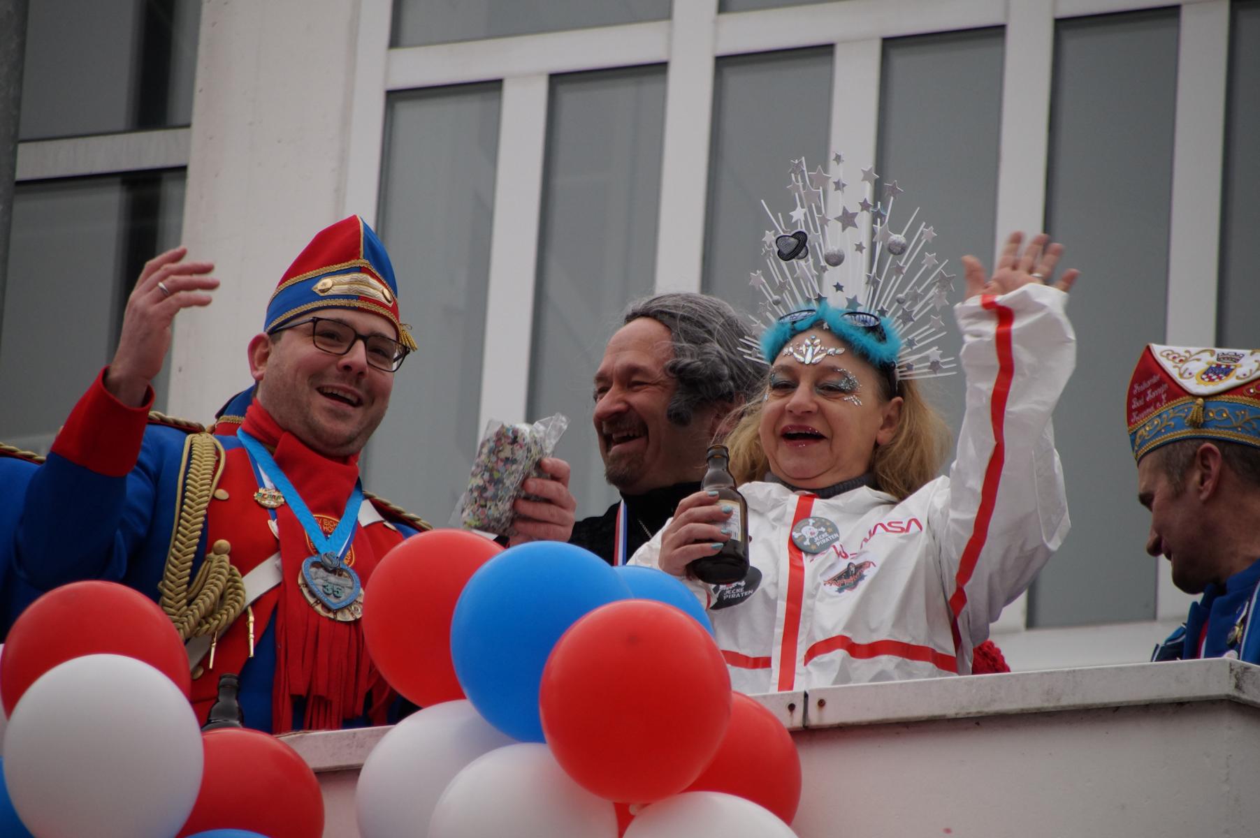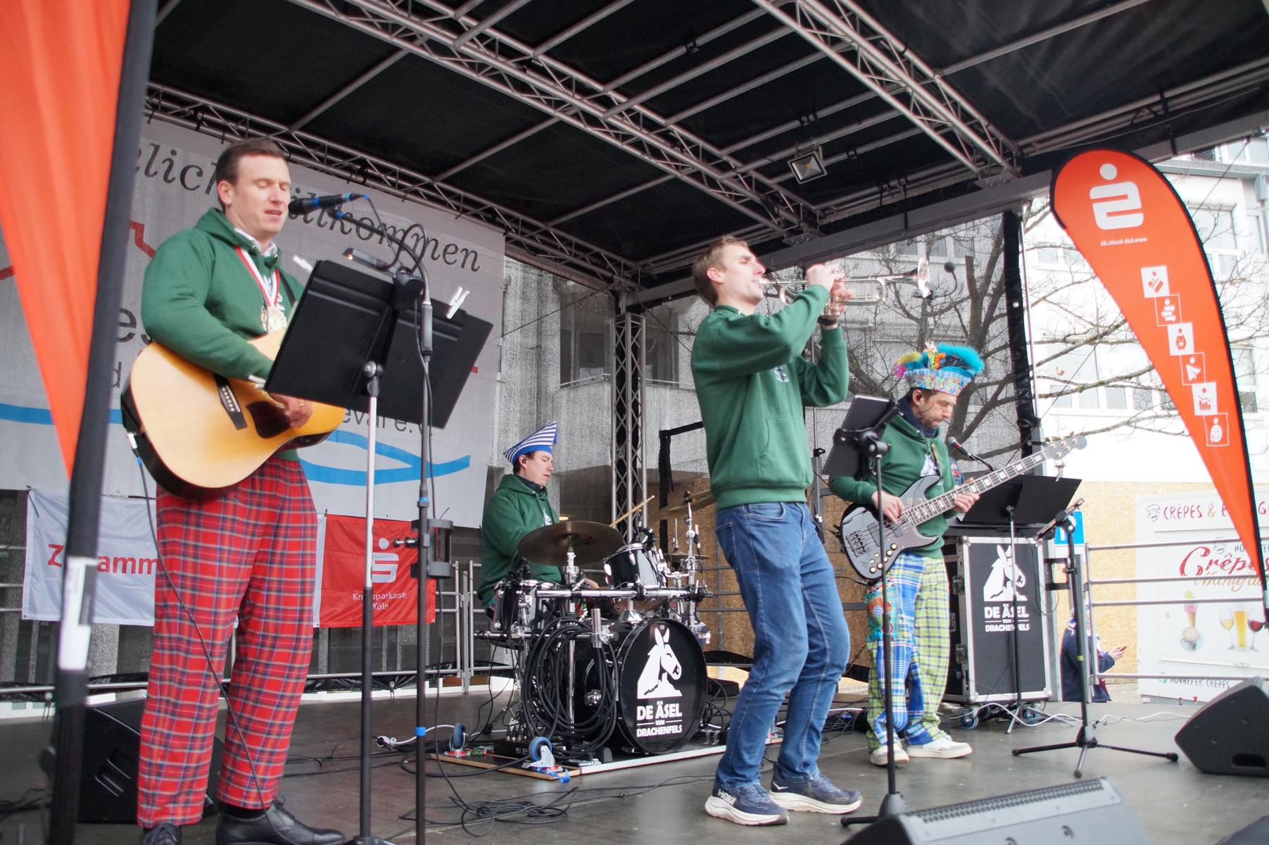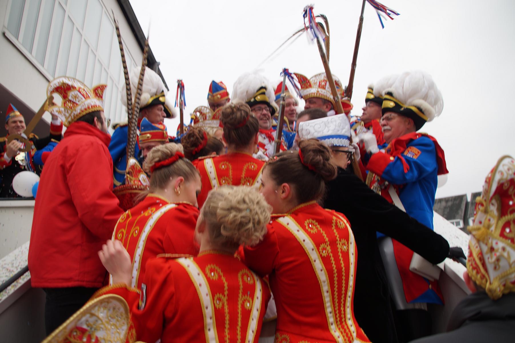 Bei trockenem Wetter und rund 5 Grad zeigten die Bad Honnefer Karnevalsvereine unter der Leitung des Festausschuss Bad Honnefer Karneval e.V. und der Moderation von Norbert Grunwald , Leiter des Stadtsoldatencorps Bad Honnef (Spielmannszuges), in einem fast 4 Stündigen Programm, was sie zu bieten haben.