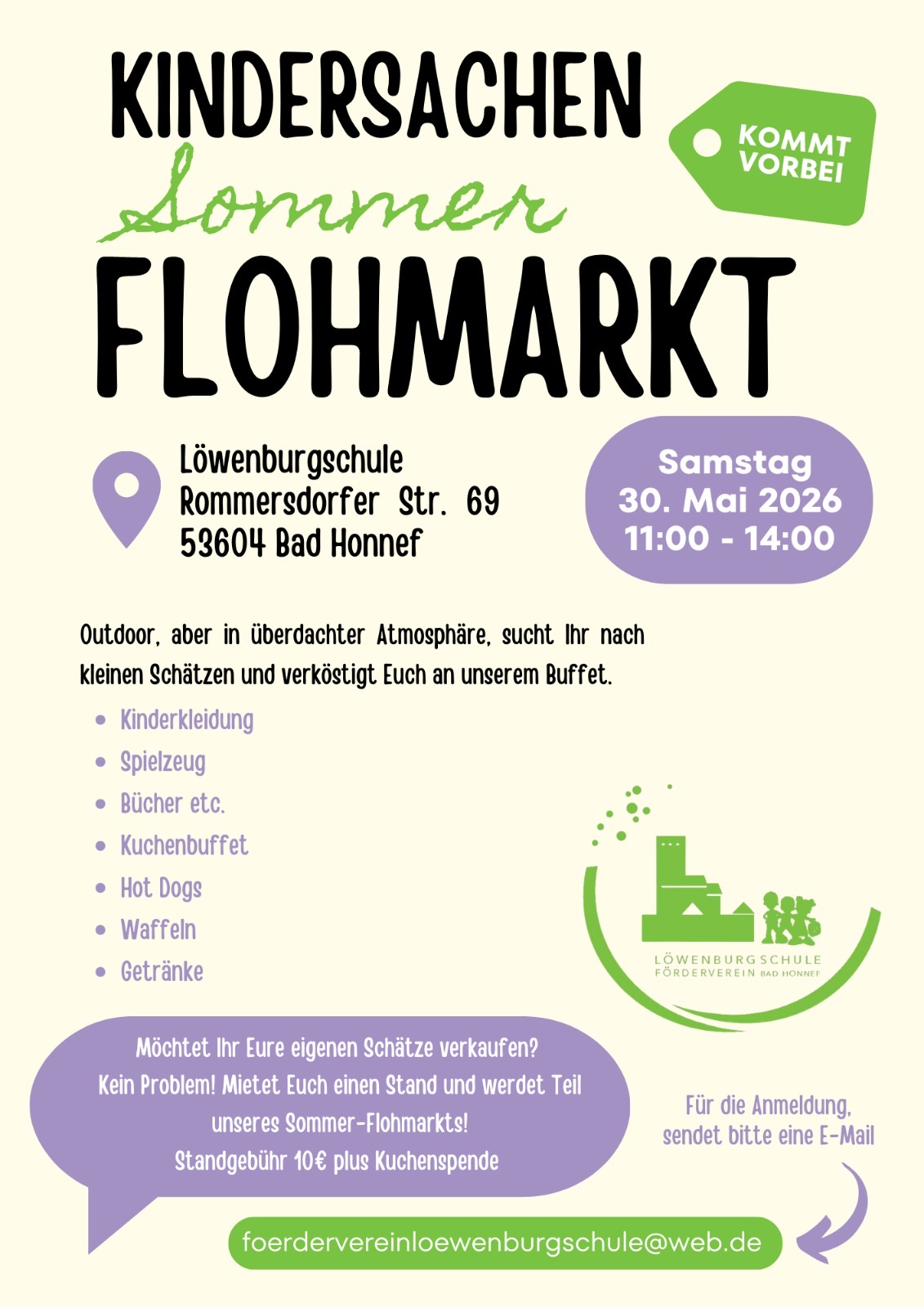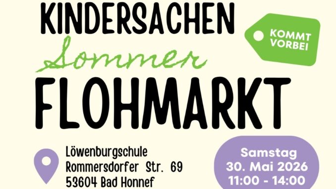 Premiere in Rommersdorf: Am Samstag, 30. Mai 2026, veranstaltet der Förderverein der Löwenburgschule erstmals einen großen Kindersachen-Sommerflohmarkt auf dem Schulgelände in Rommersdorf. Von 11:00 bis 14:00 Uhr sind Familien herzlich eingeladen, nach gut erhaltenen Schätzen zu stöbern und das vielfältige Angebot zu genießen.