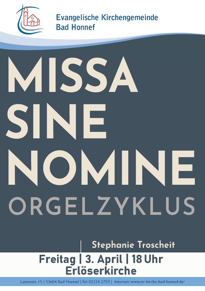Am Karfreitag, den 3. April um 18 Uhr lädt die Ev. Kirchengemeinde Bad Honnef zu einer besonderen Orgelaufführung ein: Die Organistin und Komponistin Stephanie Troscheit präsentiert in der Erlöserkirche Bad Honnef ihren Orgelzyklus „Missa Sine Nomine“.