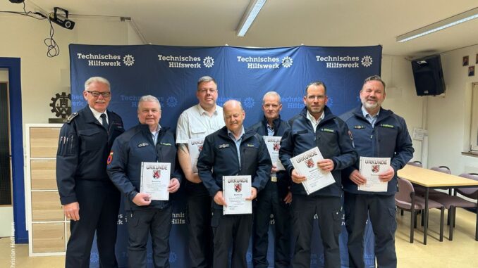 Starke Zusammenarbeit für unsere Sicherheit: Kreisbrandmeister Stefan Gandelau hat sechs neue Fachberater THW offiziell in ihr Amt berufen.