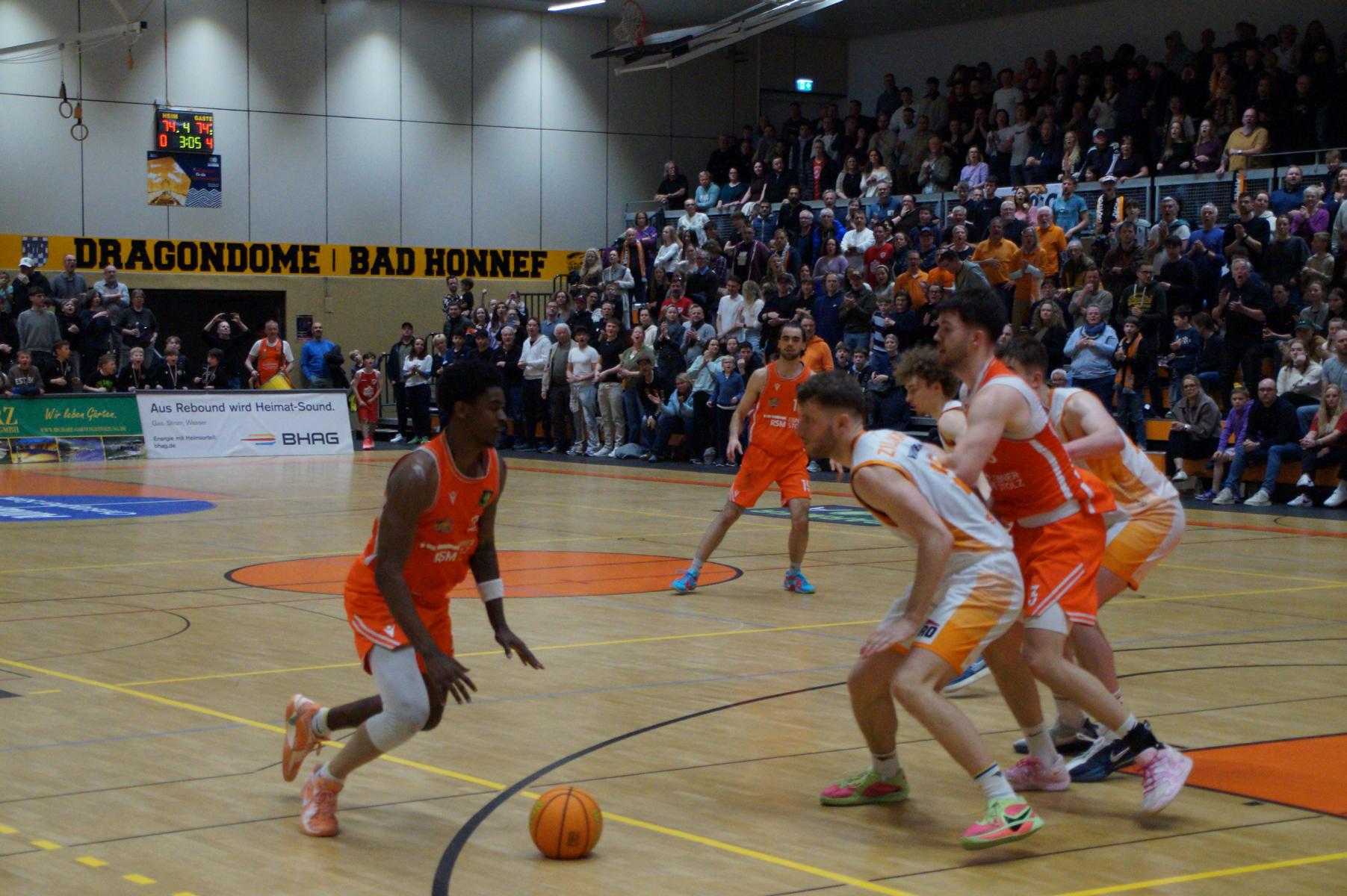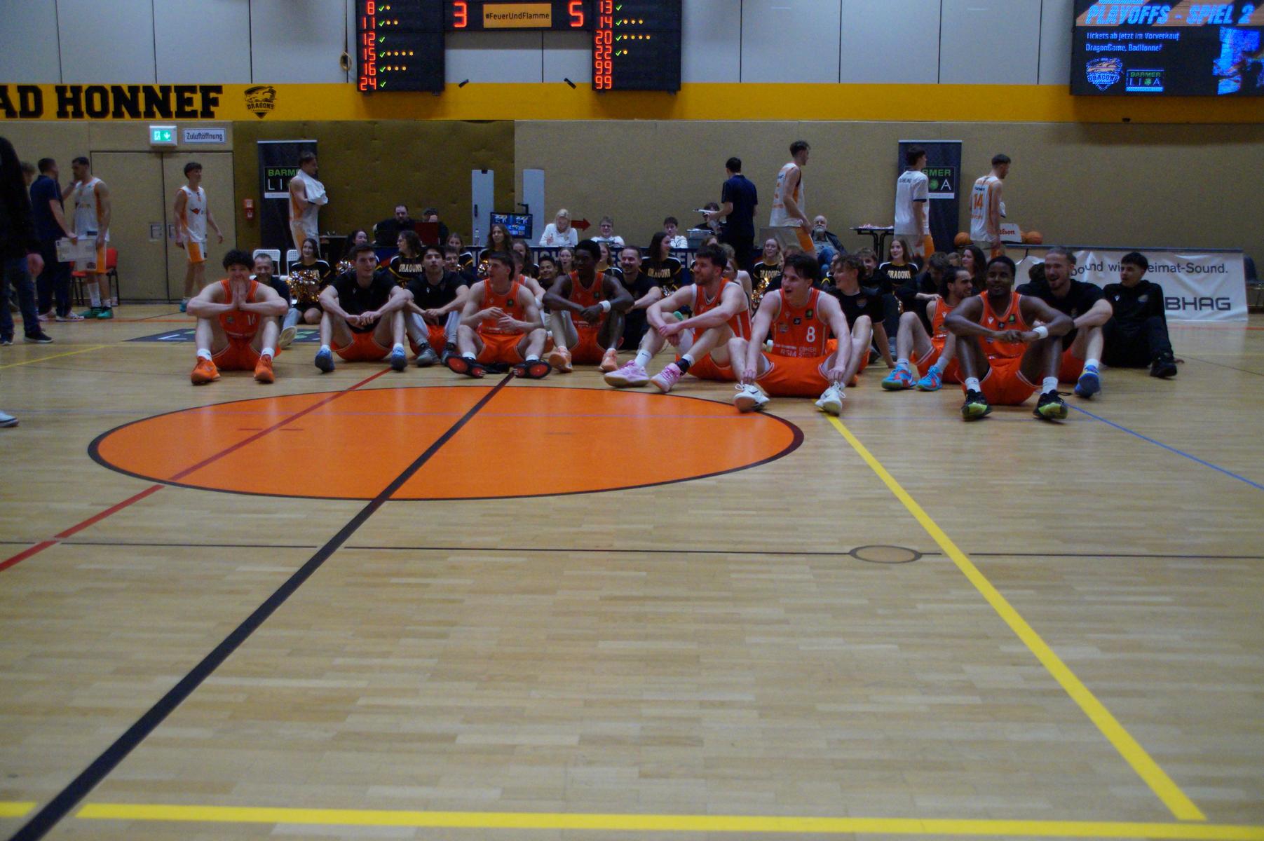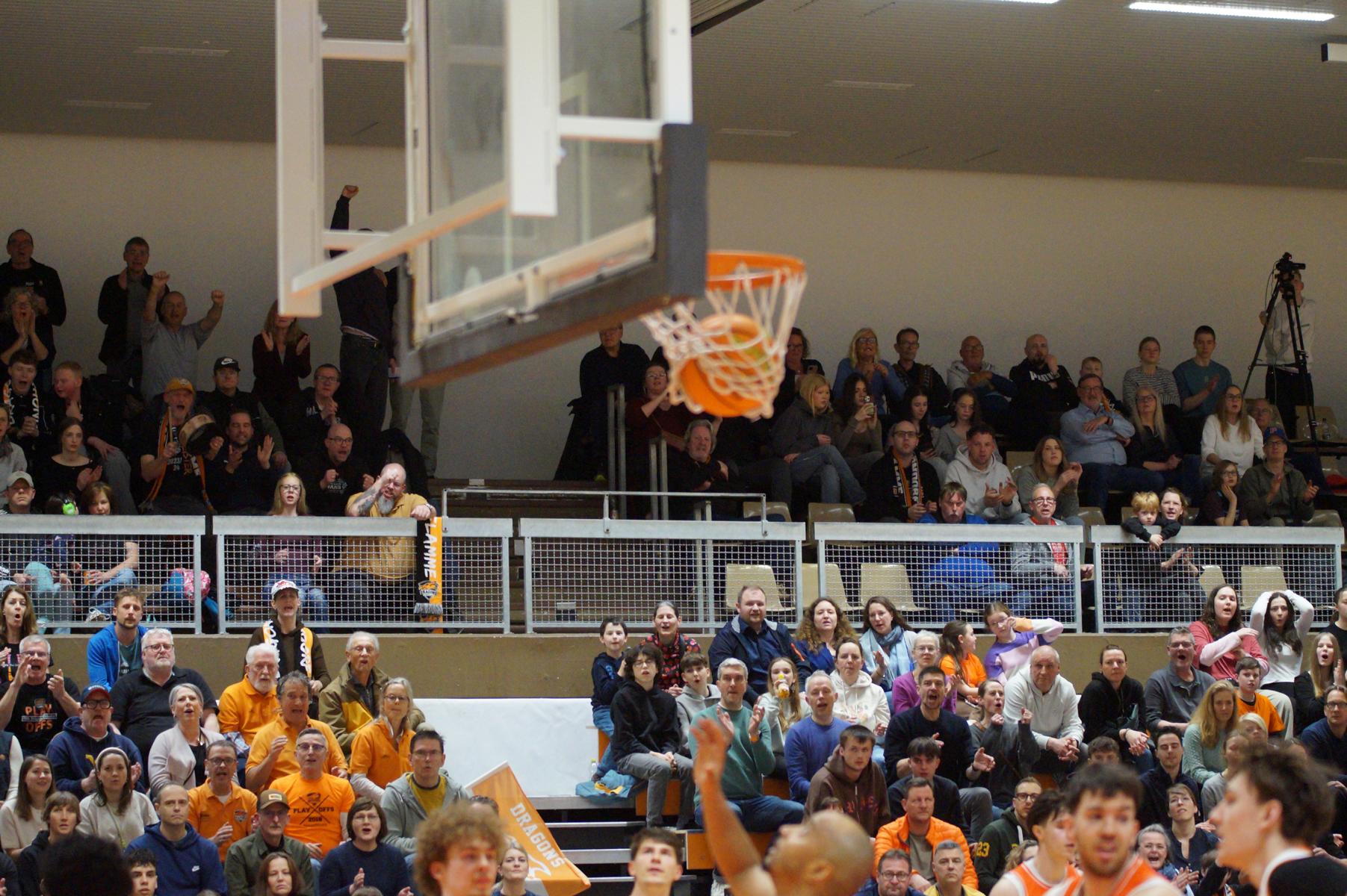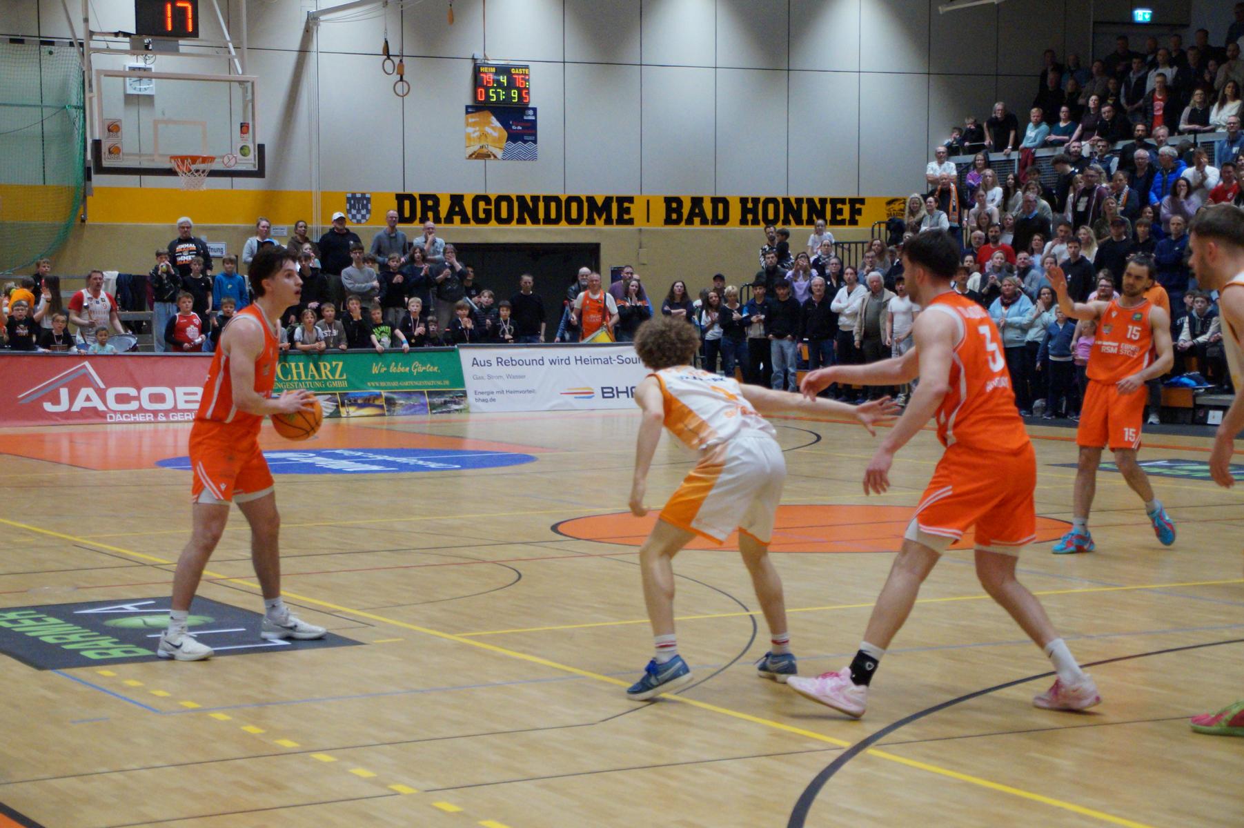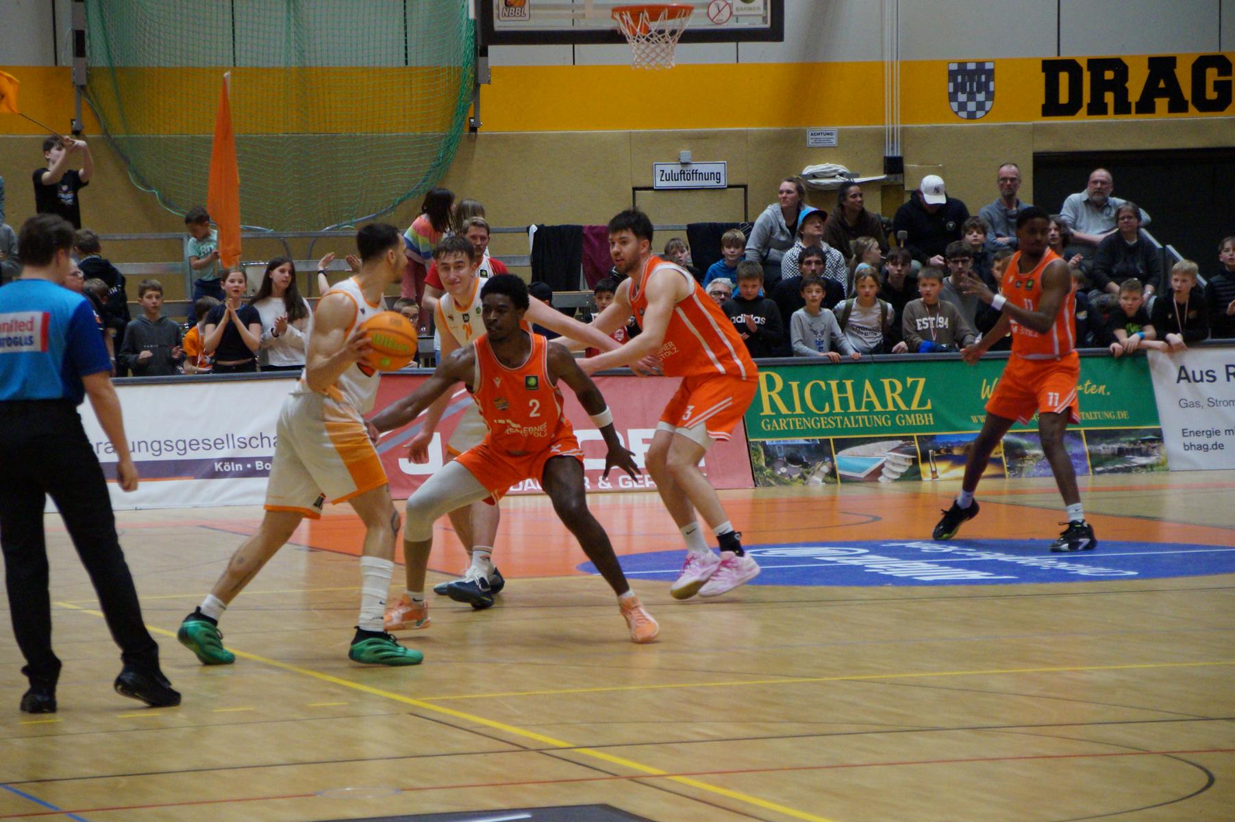 Das Finale der regulären Saison zwischen Rhöndorf und Rostock blieb nichts schuldig. Erst mit dem letzten Wurfversuch fiel die Entscheidung. Rund 915 Fans im DragonDome hielten den Atem an, aber der Wurf der Seawolfes landete den Bruchteil einer Sekunde zu spät im Korb der Hausherren. Damit war der denkbar knappe 81:79-Sieg (48:39) und die Playoff-Qualifikation der Rheinländer perfekt.