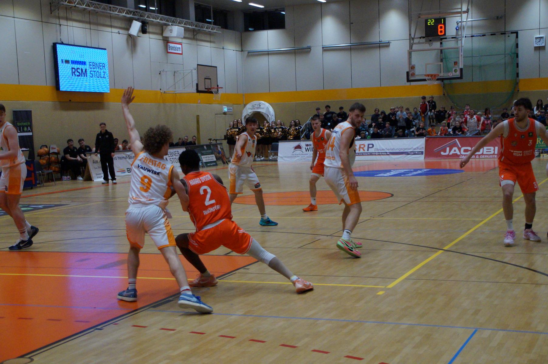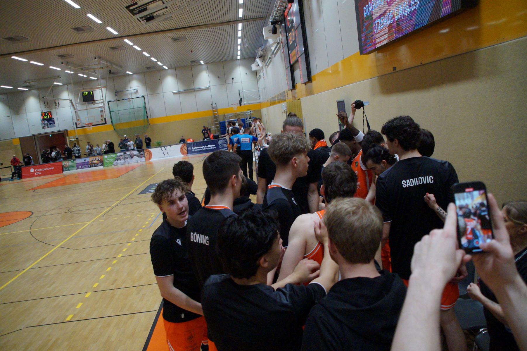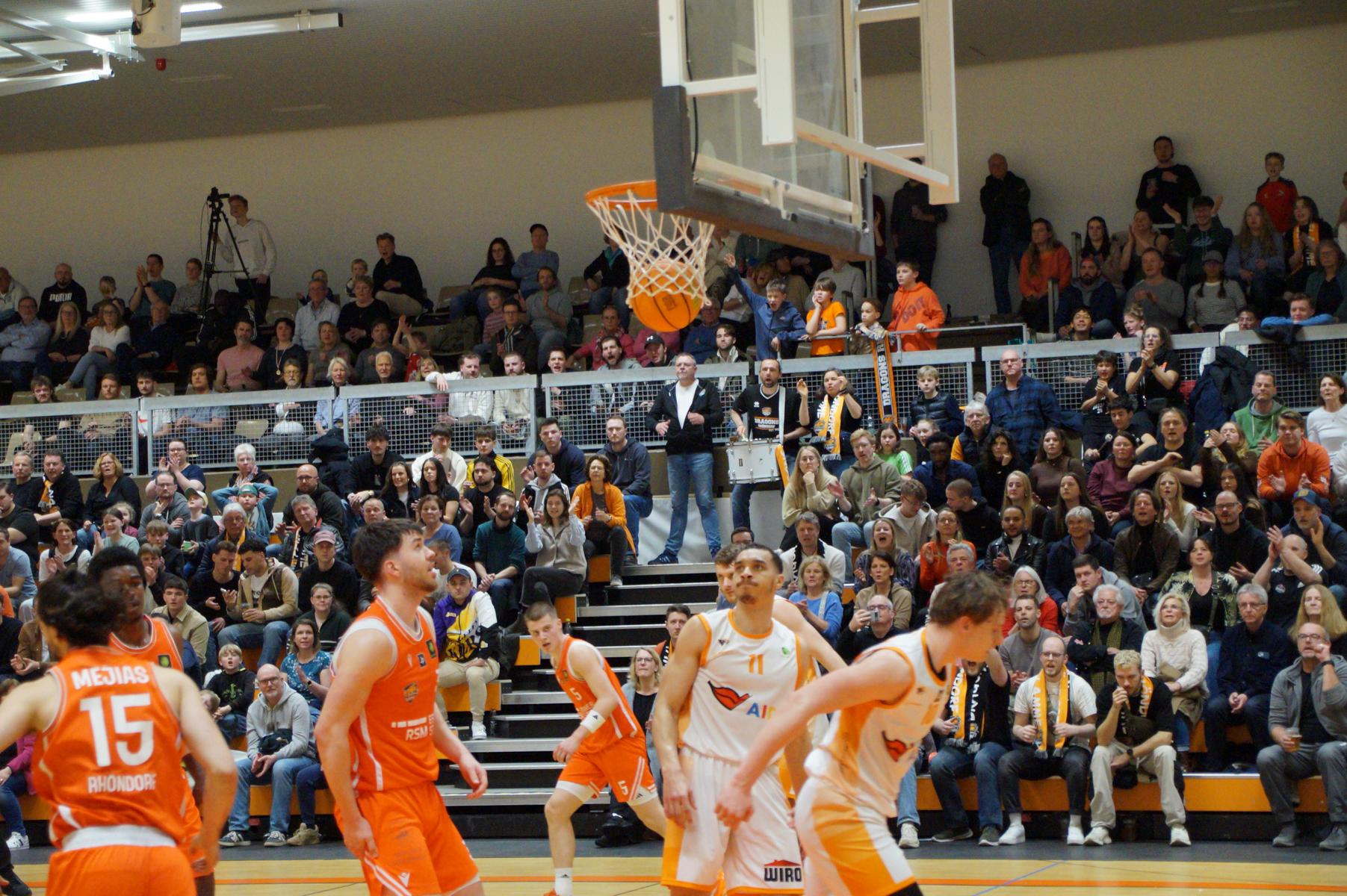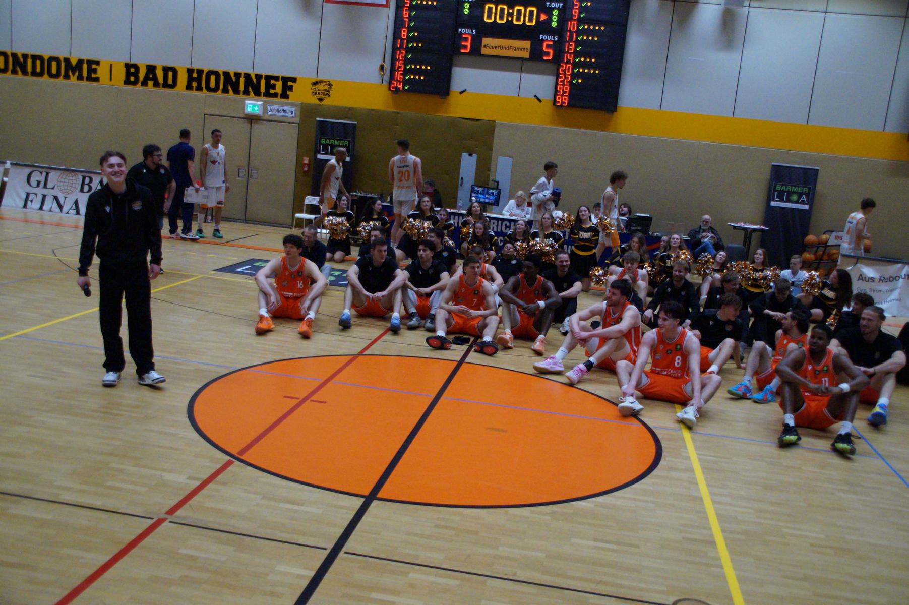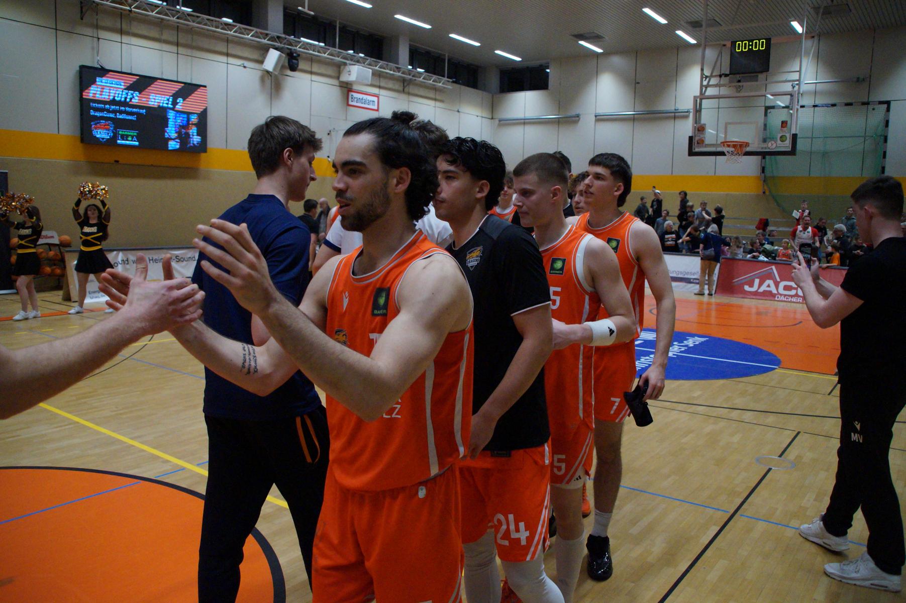 Das Finale der regulären Saison zwischen Rhöndorf und Rostock blieb nichts schuldig. Erst mit dem letzten Wurfversuch fiel die Entscheidung. Rund 915 Fans im DragonDome hielten den Atem an, aber der Wurf der Seawolfes landete den Bruchteil einer Sekunde zu spät im Korb der Hausherren. Damit war der denkbar knappe 81:79-Sieg (48:39) und die Playoff-Qualifikation der Rheinländer perfekt.