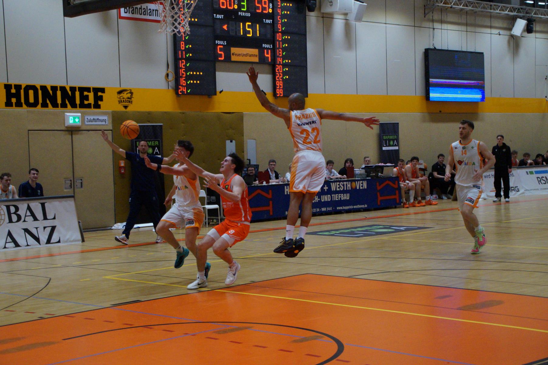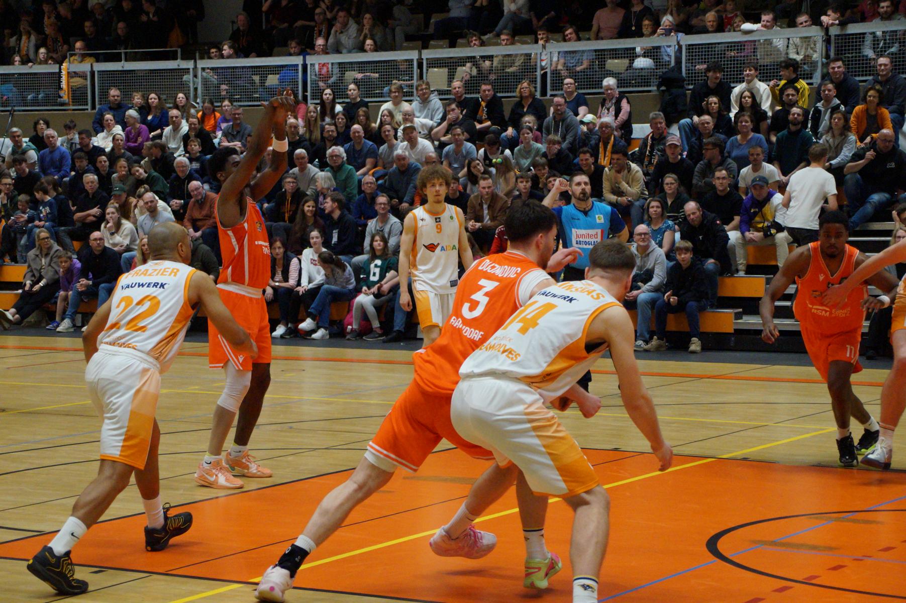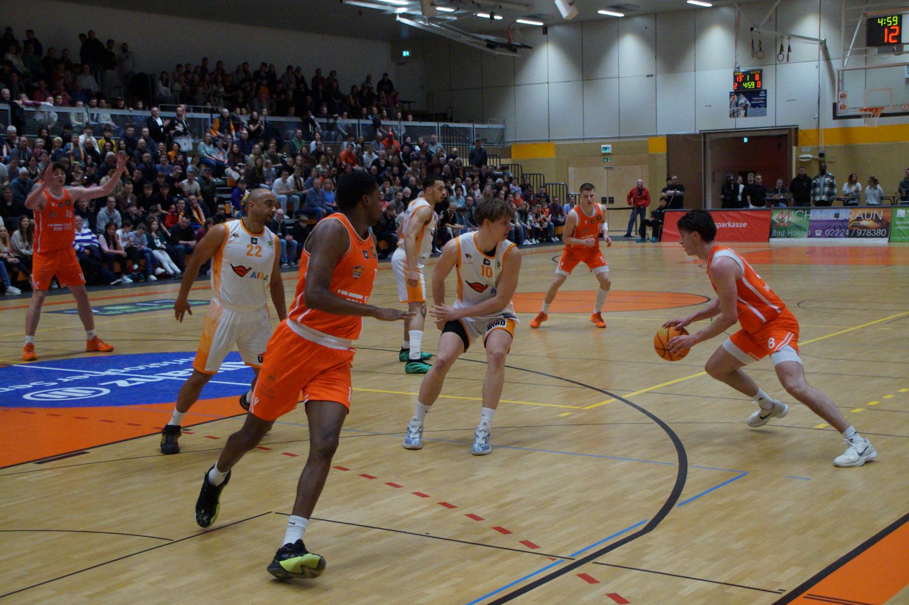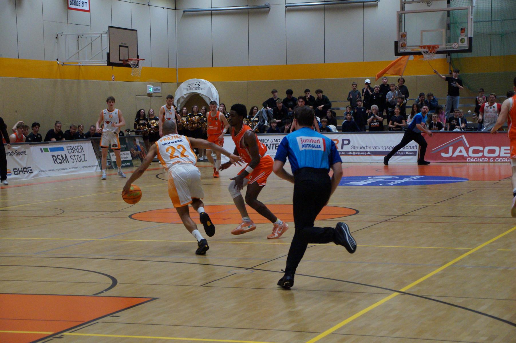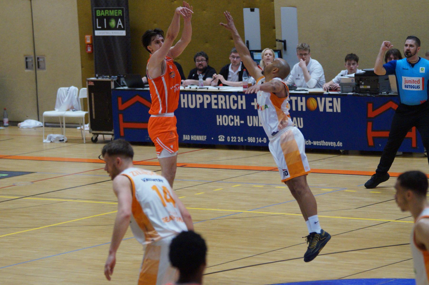 Das Finale der regulären Saison zwischen Rhöndorf und Rostock blieb nichts schuldig. Erst mit dem letzten Wurfversuch fiel die Entscheidung. Rund 915 Fans im DragonDome hielten den Atem an, aber der Wurf der Seawolfes landete den Bruchteil einer Sekunde zu spät im Korb der Hausherren. Damit war der denkbar knappe 81:79-Sieg (48:39) und die Playoff-Qualifikation der Rheinländer perfekt.