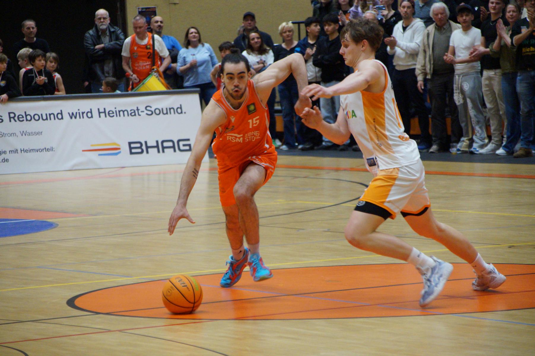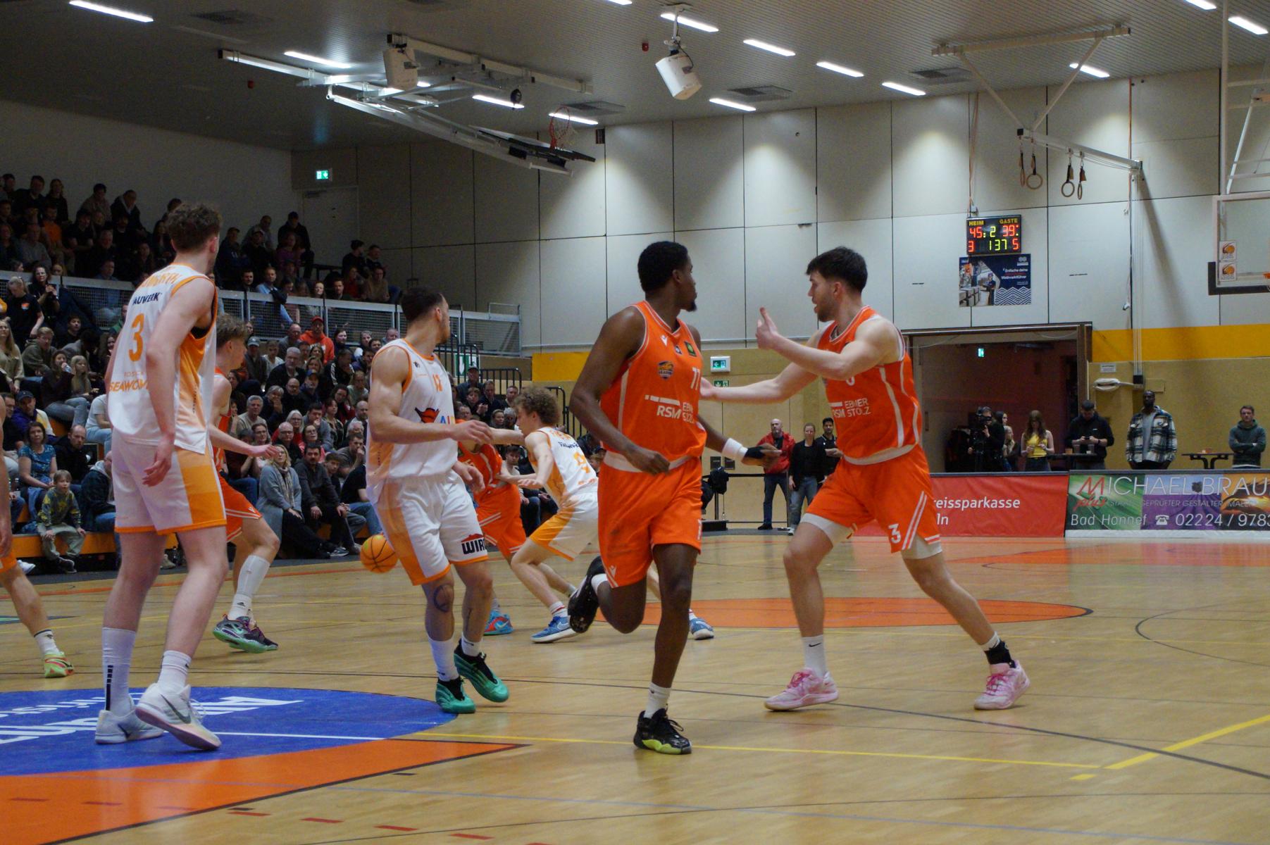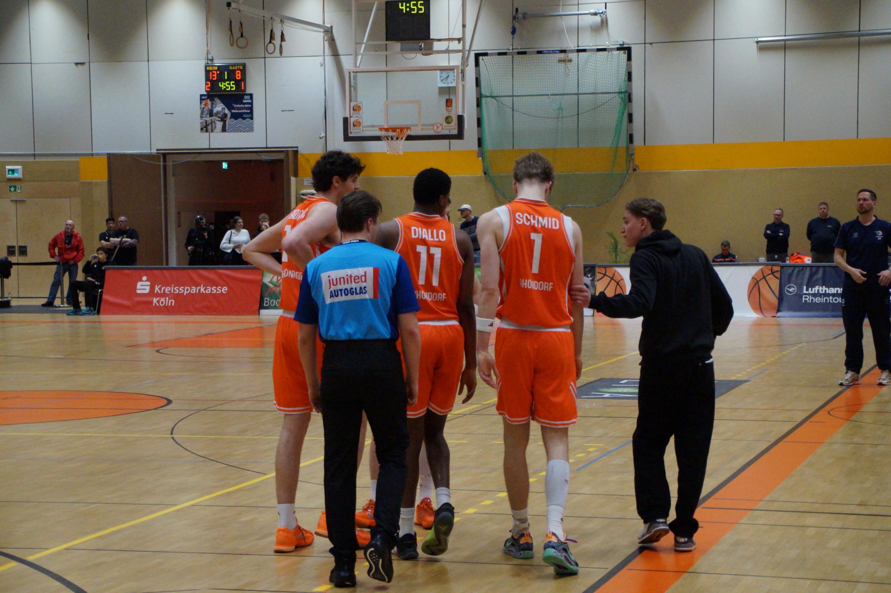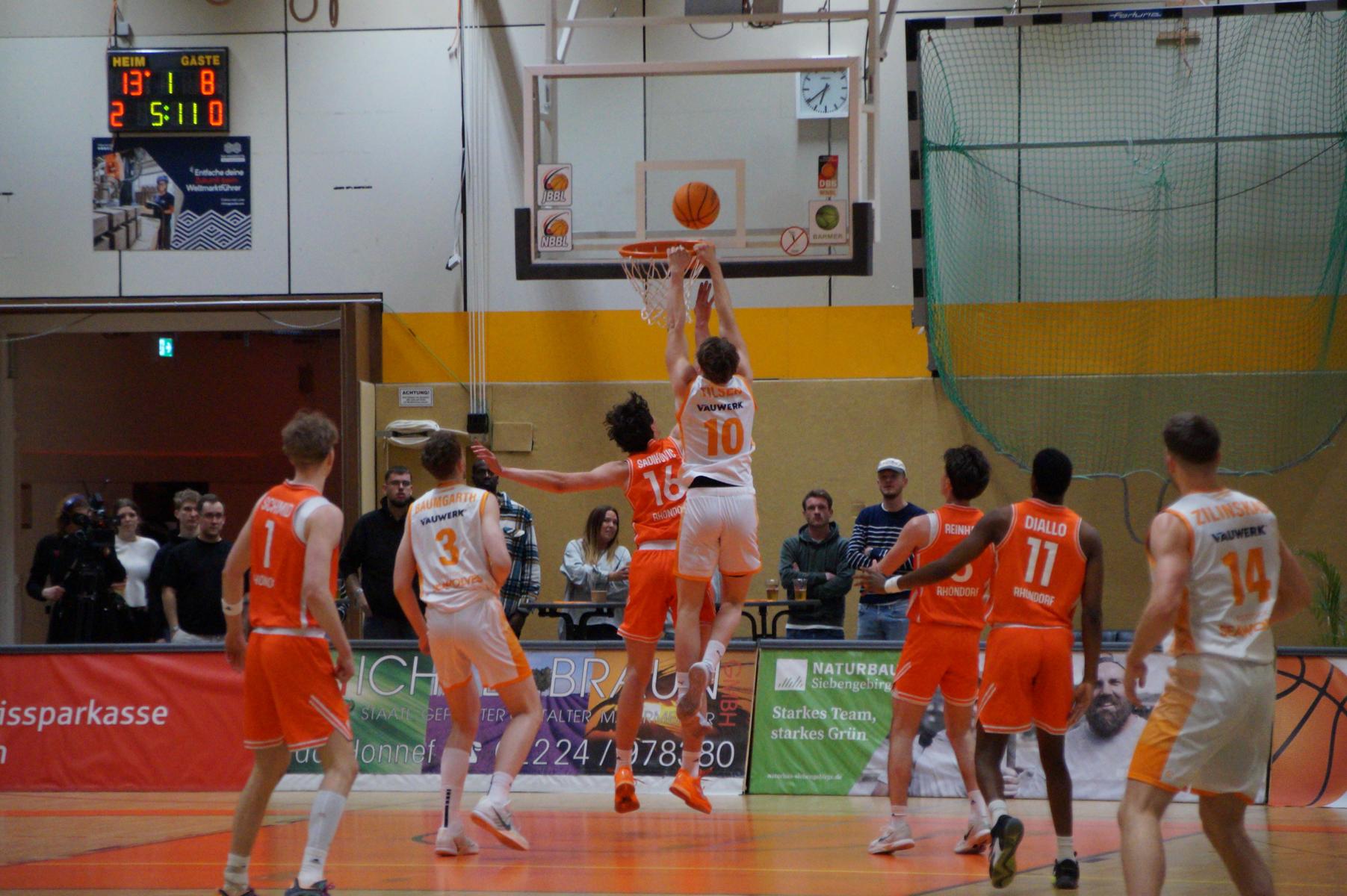 Im zweiten Spielabschnitt fiel dann auch noch der gefürchtete Dreier von den Gästen und sie glichen in der 13. Minute aus (34:34). Rhöndorf ließ das Zwischenhoch von Rostock aber kalt und konterte u.a. mit zwei blitzsauberen Distanzwürfen von Kenan Reinhart und einem von Vuk Scepanovic zur 48:39-Pausenführung.