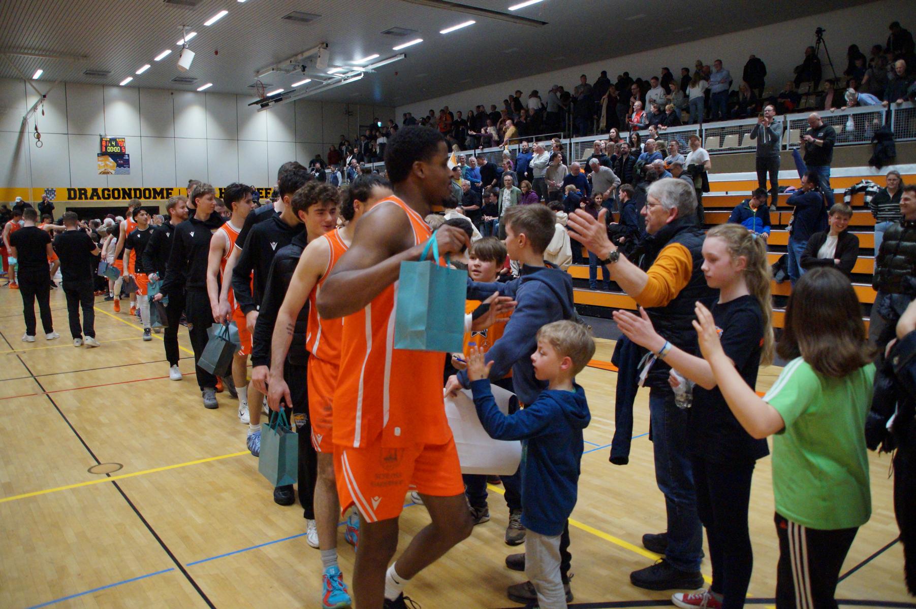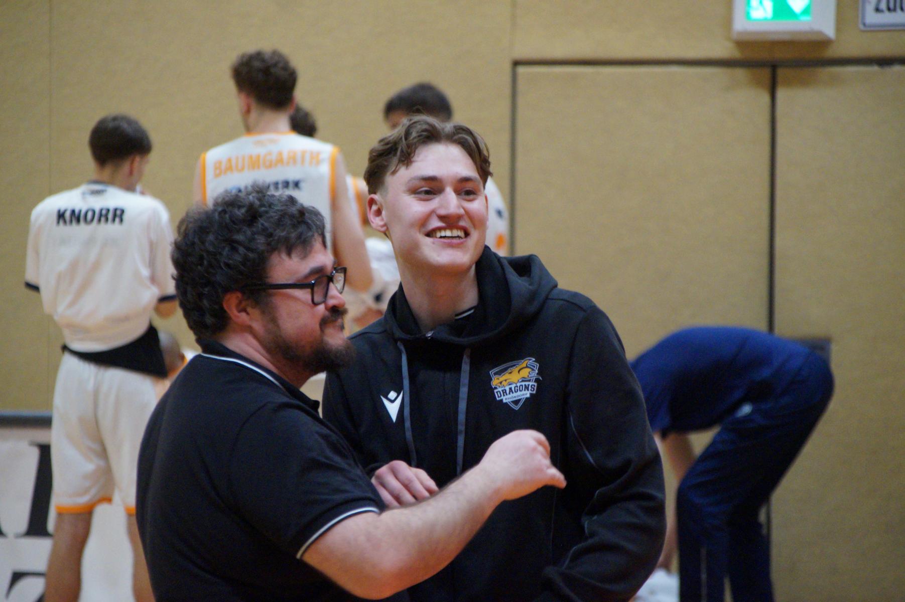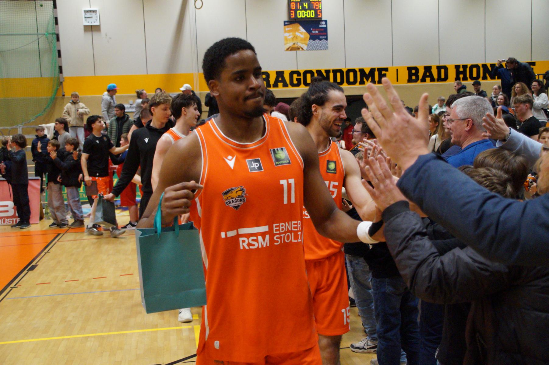 Max Becker (Headcoach Dragons Rhöndorf): „Danke an alle Fans, die uns heute zum Sieg getragen haben. Es war eine unfassbare Atmosphäre und für mich unbeschreiblich so viele bekannte Gesichter zu sehen. Es war mich der emotionalste Moment, den ich bislang im Basketball erleben durfte. Ich hoffe, dass wir in den Playoffs wieder so viele Fans begrüßen dürfen. Diese Unterstützung war einzigartig und macht den Charakter der Dragons aus.