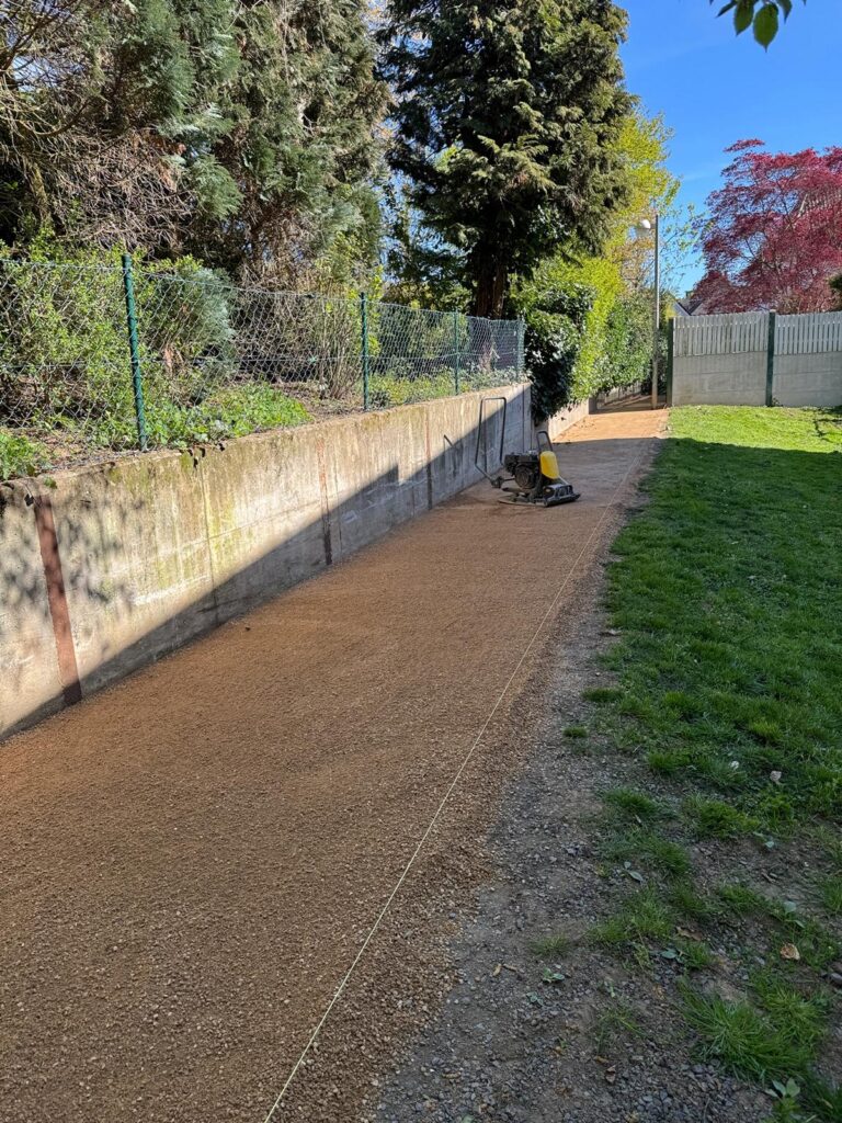 Mitte Januar hatte sich deshalb der gewählte Direktkandidat für den Wahlbezirk 04 Rommersdorf-Bondorf , Herr Stephan Schütte, in enger Zusammenarbeit mit dem Bürgerverein an die Stadt gewandt mit der Bitte, diesen Fußweg wieder Instand zu setzen. Die Zusage aus dem Rathaus kam bald und in dieser Woche – die Schüler des Sibi sind noch in den Osterferien – wurde die Instandsetzung vom Tiefbauamt durchgeführt.