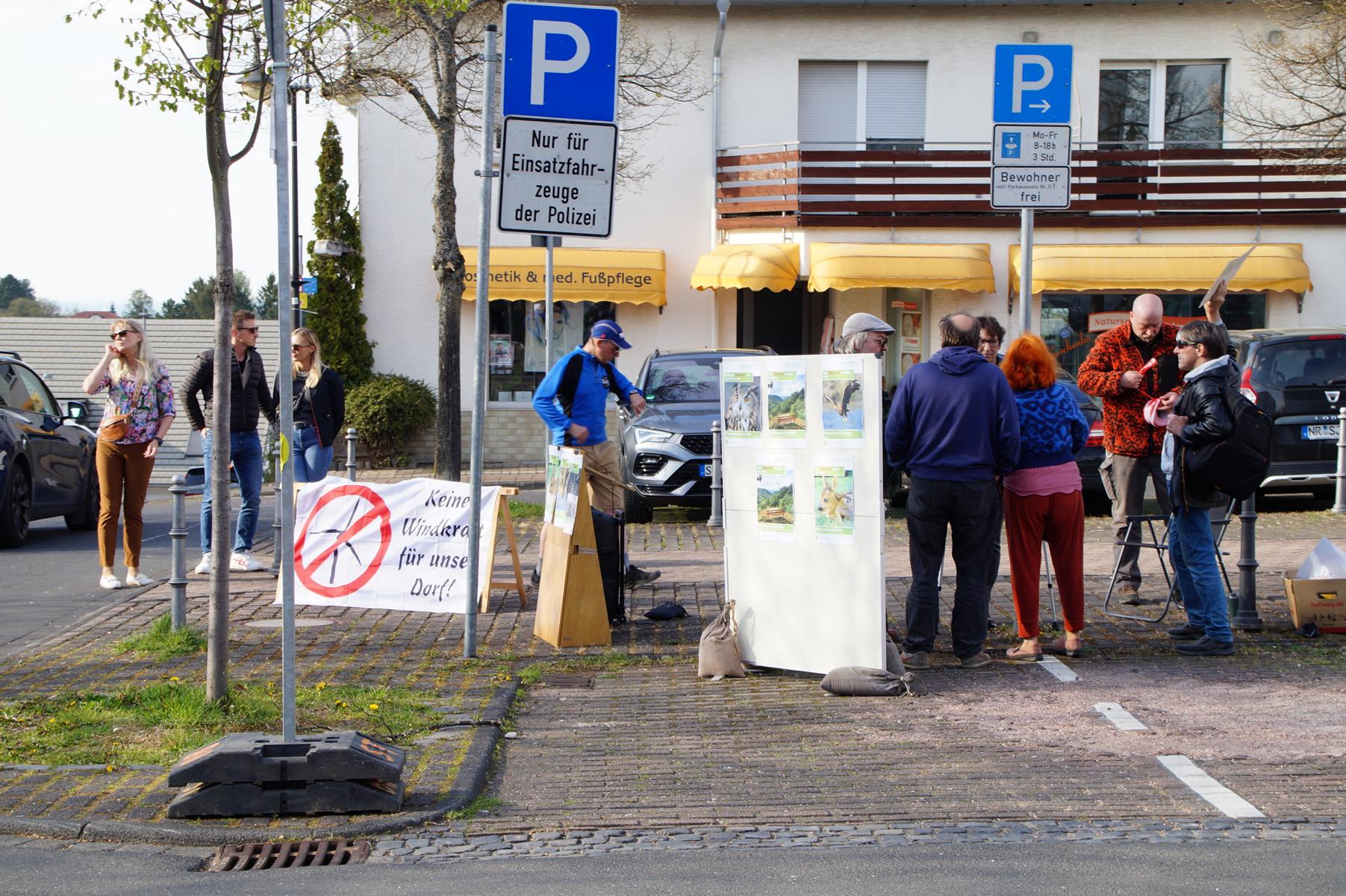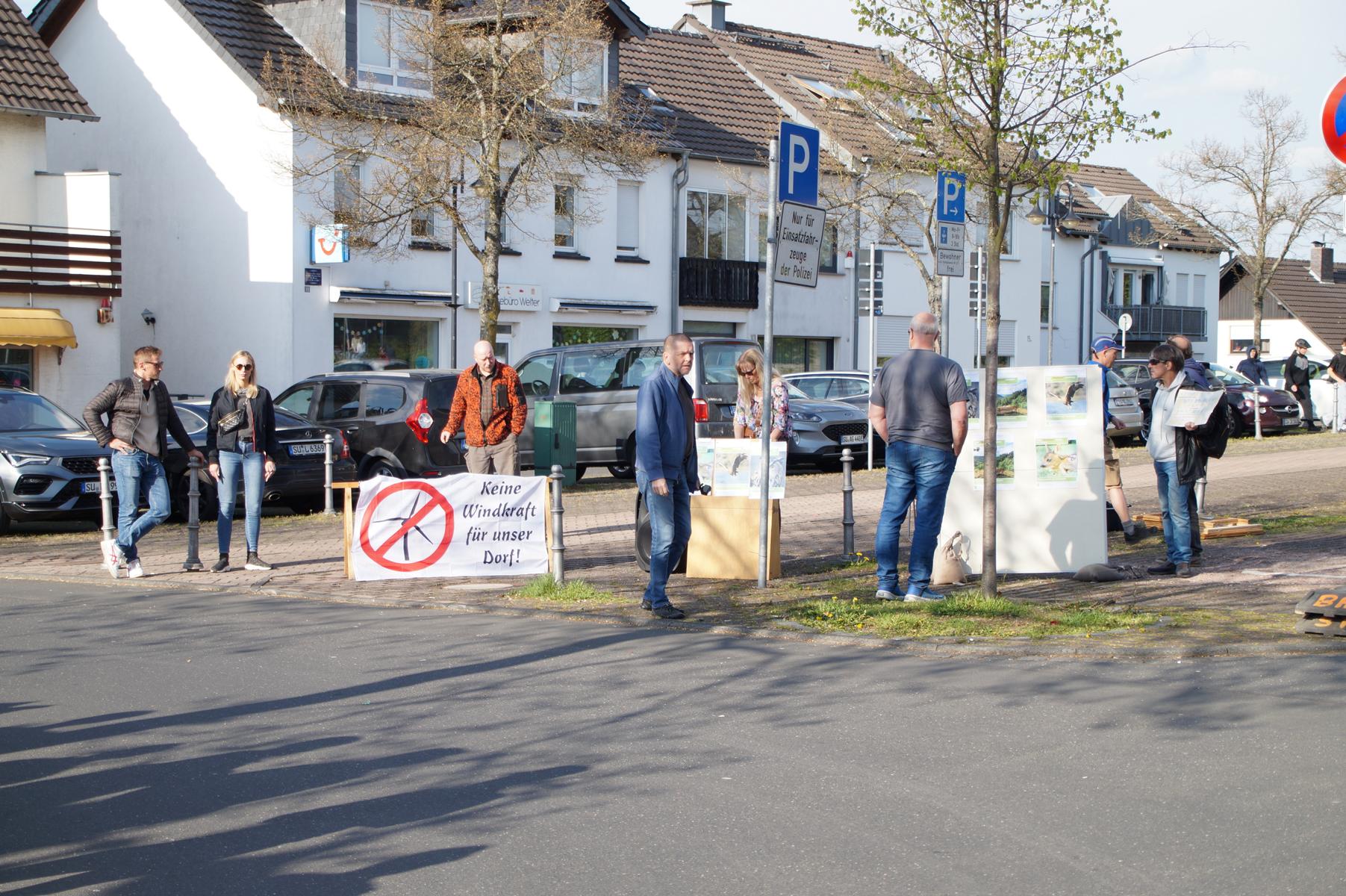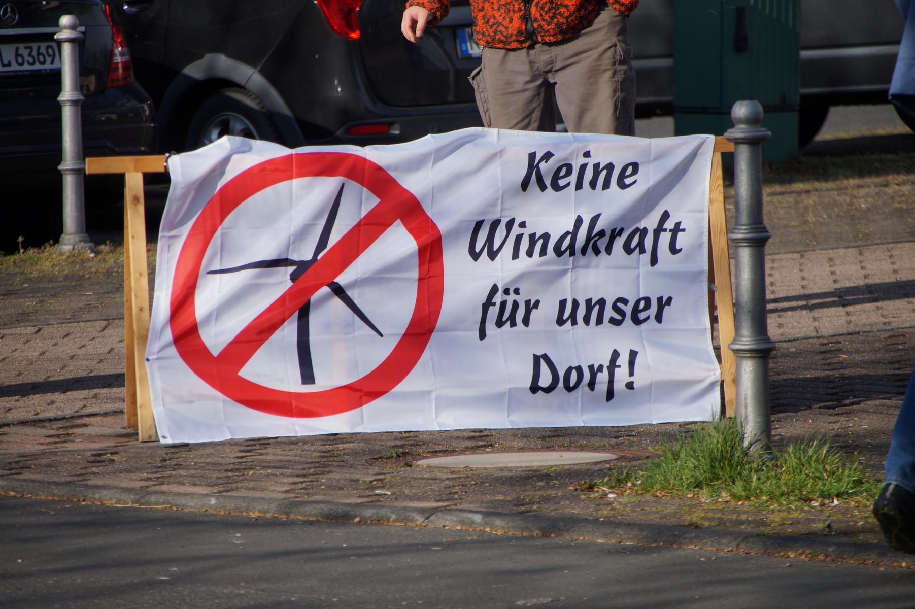 Bereits im Vorfeld der Veranstaltung hatten sich Windkraftgegner vor dem Aegidienberger Bürgerhaus postiert. Mit Transparenten und lautstarken Rufen machten sie Stimmung gegen das geplante Vorhaben und wollten auf ihre Bedenken aufmerksam machen.