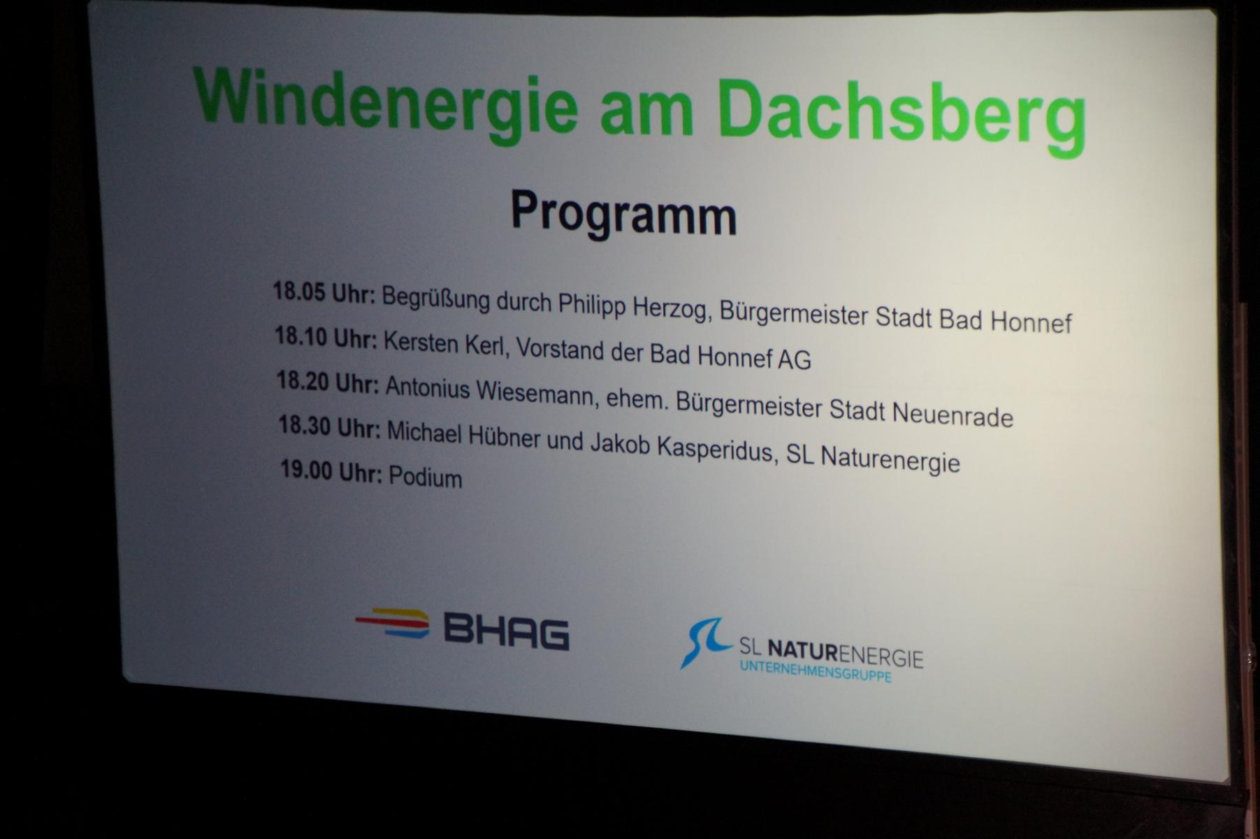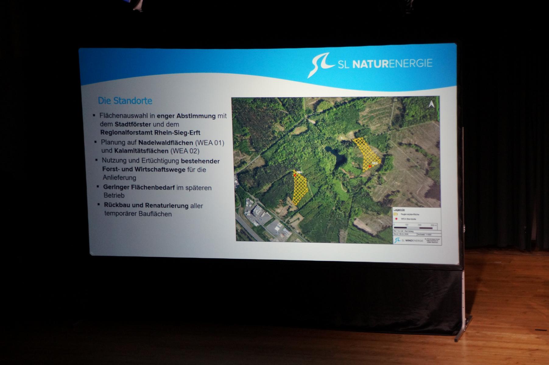 Eingeladen hatten die Bad Honnef AG und die SL Naturenergie, die zunächst den aktuellen Stand ihrer Planungen vorstellten. Nach Angaben der Projektträger könnten die vorgesehenen Anlagen rechnerisch rund 42 Megawatt erzeugen. Der jährliche Energiebedarf im Versorgungsgebiet der Bad Honnef AG liegt bei etwa 61 Megawatt. Beide Anlagen befinden sich weiterhin im Genehmigungsverfahren.