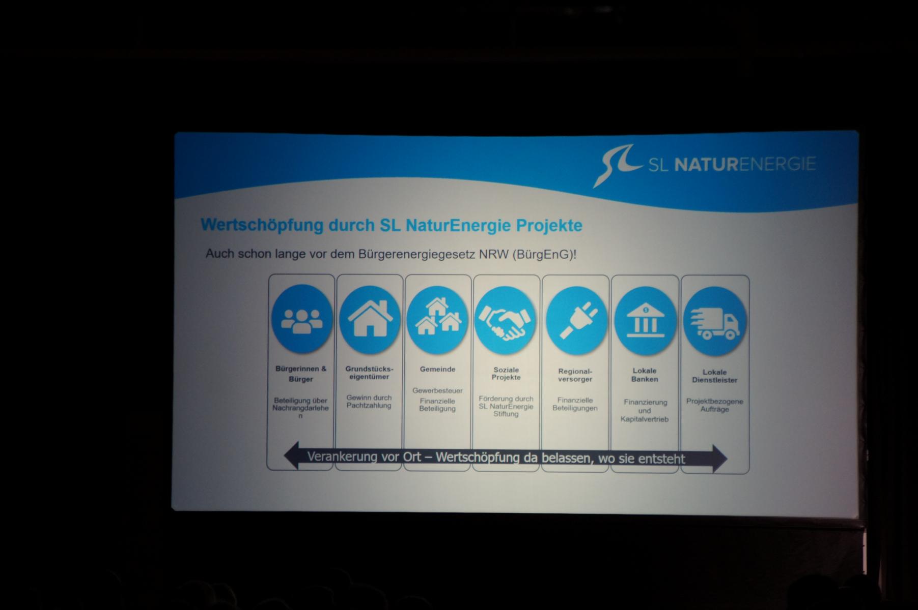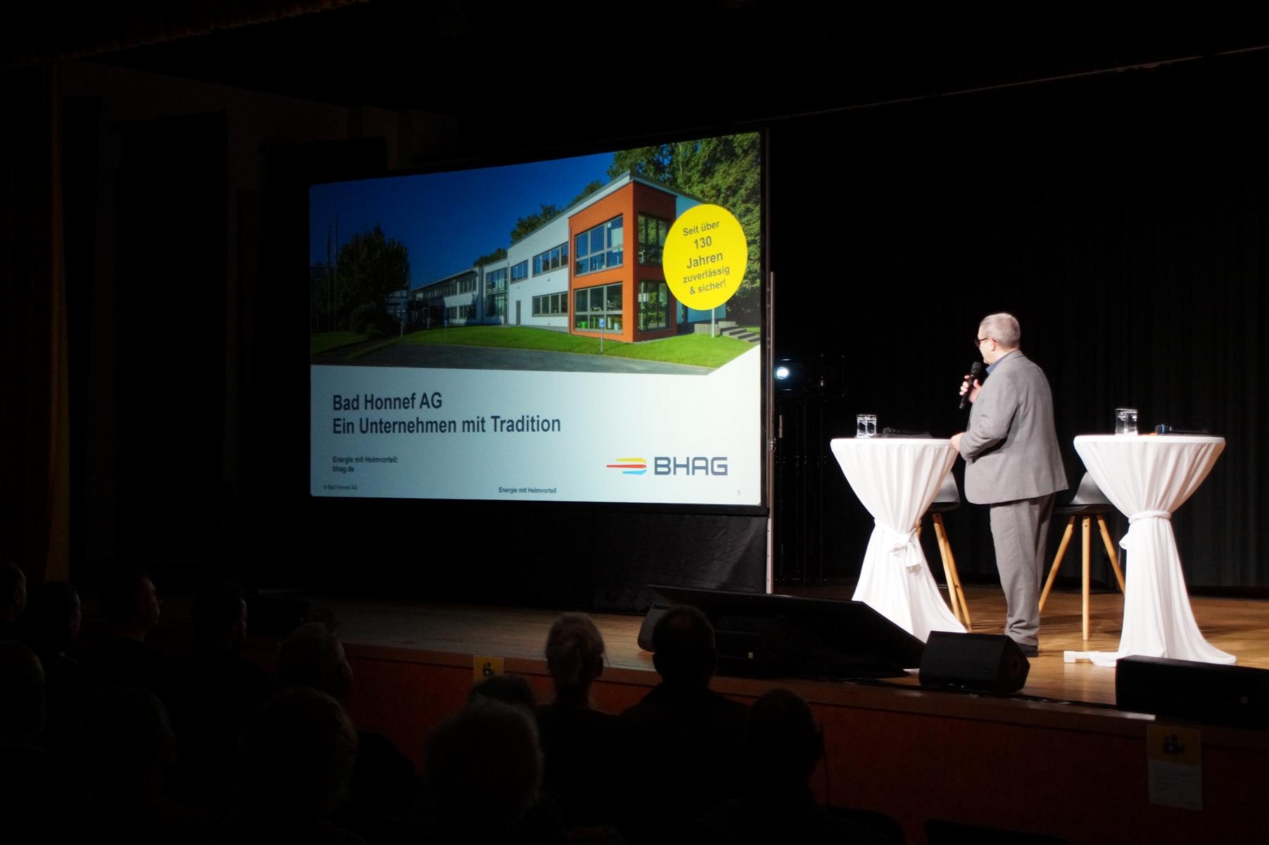 Nach dieser technischen Einführung berichtete Antonius Wiesemann, ehemaliger Bürgermeister von Neuenrade im Sauerland, von den Erfahrungen seiner Heimatgemeinde. Nach einer von Widerständen geprägten Anfangszeit, insbesondere aus der Nachbarschaft, habe sich das dortige Projekt letztlich als Gewinn für die Kommune erwiesen, sagte er. Entscheidend sei die Wertschöpfung vor Ort, wie sie auch in Bad Honnef angestrebt werde.