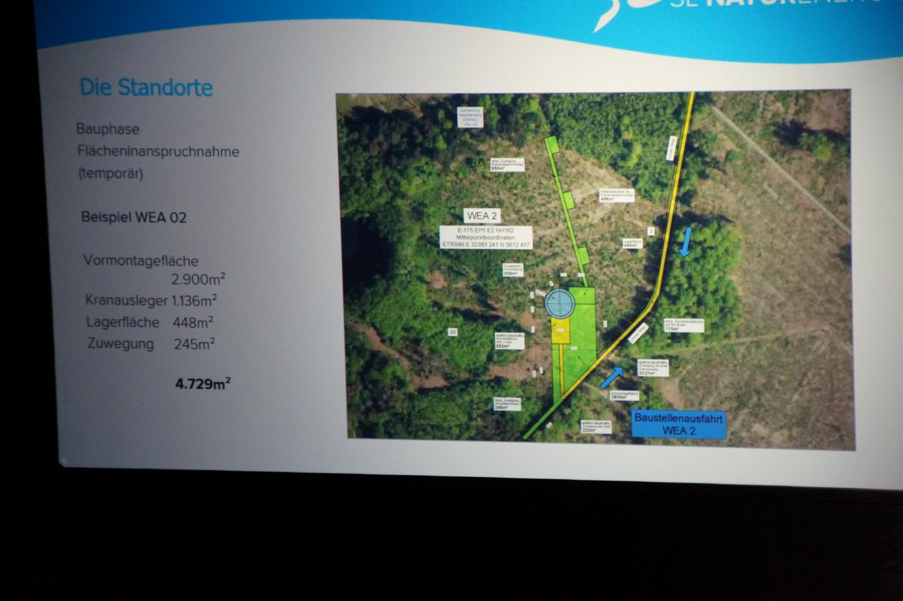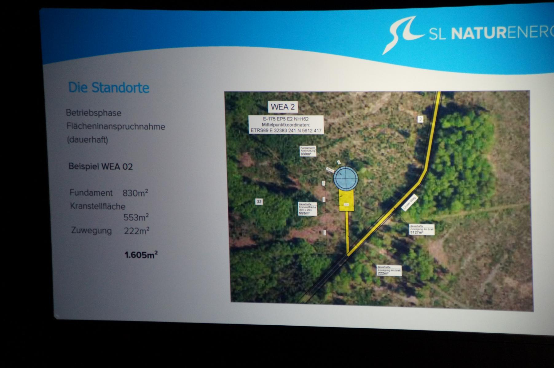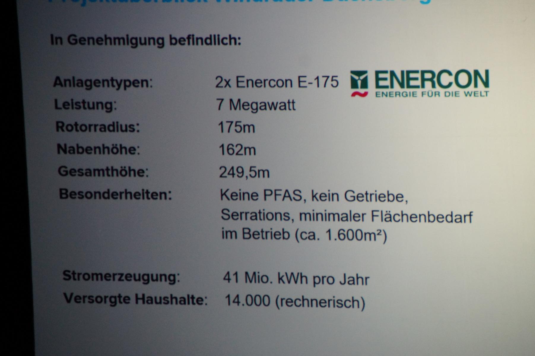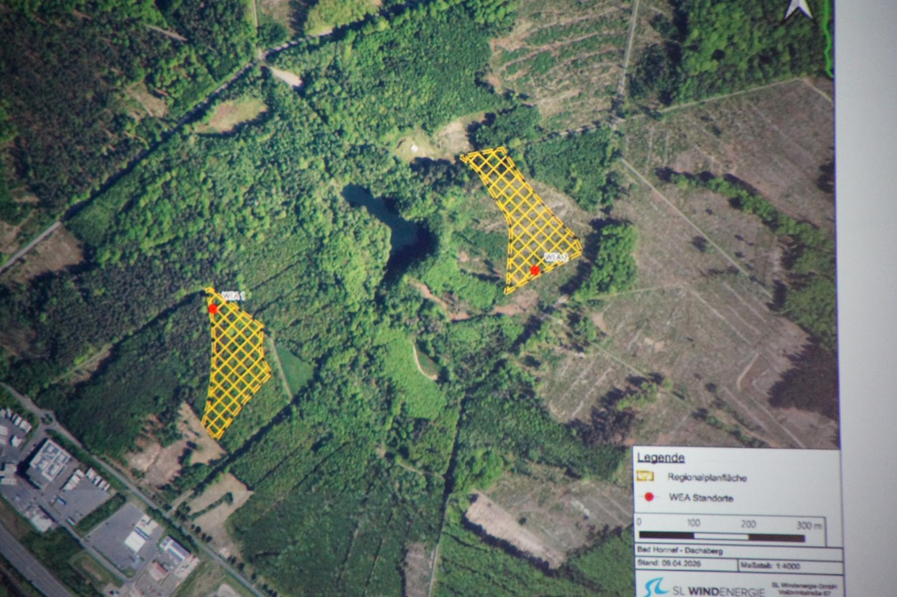 Die BHAG, eine Beteiligungsgesellschaft der Stadt, plane daher im Stadtwald östlich des Autohofs Dachsberg und südlich des Dachsbergsees zwei Windenergieanlagen an der Landesgrenze zu Rheinland‑Pfalz. Vorgesehen seien Anlagen des Typs Enercon E‑175 mit jeweils sieben Megawatt Leistung. Beide Windräder werden eine Nabenhöhe von 162 Metern und eine Gesamthöhe von 249,5 Metern über Grund haben. Die Flächenauswahl erfolge in enger Abstimmung mit dem Stadtförster und dem Regionalforstamt Rhein‑Sieg‑Erft.