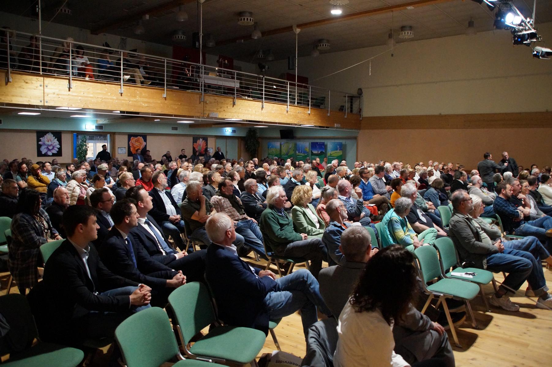 Im Anschluss nutzten viele Besucherinnen und Besucher die Möglichkeit, Fragen zu stellen. Auch zahlreiche Gäste aus den benachbarten Gemeinden in Rheinland‑Pfalz waren im Saal, um sich über die möglichen Auswirkungen der geplanten Anlagen zu informieren.