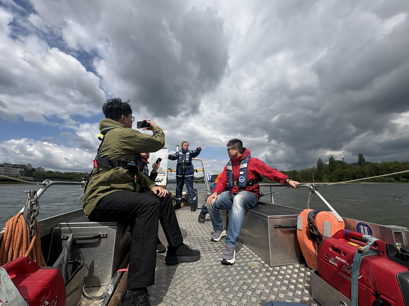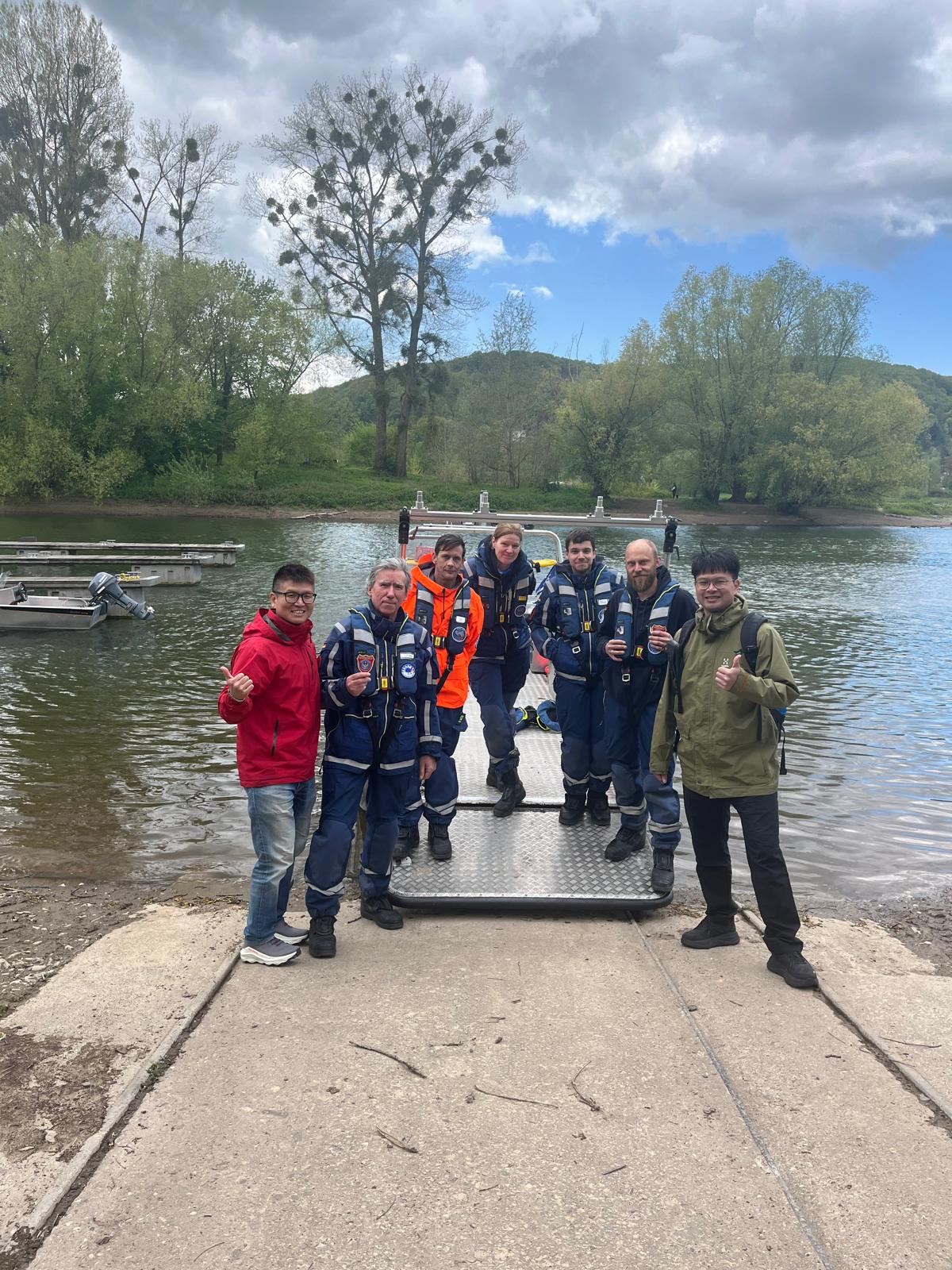 Zum Abschluss des Besuchs lud die Fachgruppe Wassergefahren zu einer kleinen Rundfahrt mit dem Mehrzweckarbeitsboot (MzAB) auf dem Rhein ein. Auch wenn es zwischendurch kurz etwas nass wurde, hatten alle Beteiligten sichtlich Spaß und betraten das Ufer schließlich mit einem Lächeln. Bevor die Reise für die Gäste weiter zur THW-Schule nach Hoya ging, wurden zum Abschied noch traditionell Patches ausgetauscht.