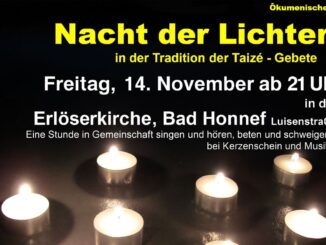 Unter dem Motto: „Singen macht glücklich … und ganz besonders in Gemeinschaft!“ lädt die Ev. Kirchengemeinde Bad Honnef zum nächsten Offenen Singen unter Leitung von […]