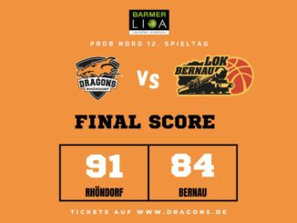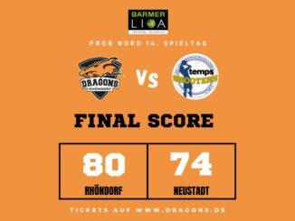 TSV Neustadt Temps Shooters vs. Dragons Rhöndorf 71:75 (23:17, 9:26, 24:12, 15:20) Dragons Rhöndorf vs. SC Rist-Wedel 64:48 (13:14, 10:6, 20:11, 21:17) Die Dragons haben […]