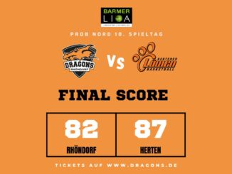 TSV Neustadt Temps Shooters vs. Dragons Rhöndorf 71:75 (23:17, 9:26, 24:12, 15:20) Dragons Rhöndorf vs. SC Rist-Wedel 64:48 (13:14, 10:6, 20:11, 21:17) Die Dragons haben […]