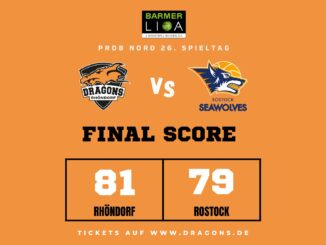 Dragons Rhöndorf vs. Seawolves Academy : 81:79 — (27:20, 21:19, 15:24, 18:16) Das Finale der regulären Saison zwischen Rhöndorf und Rostock blieb nichts schuldig. Erst mit […]