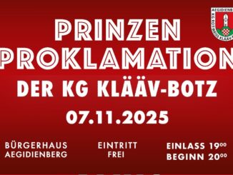 Am 07.11.2025 findet im Bürgerhaus Aegidienberg die große Prinzenproklamation der KG Klääv Botz statt. Damit startet die KG Klääv Botz offiziell in die fünfte Jahreszeit – und lüftet zugleich das größte Geheimnis des […]